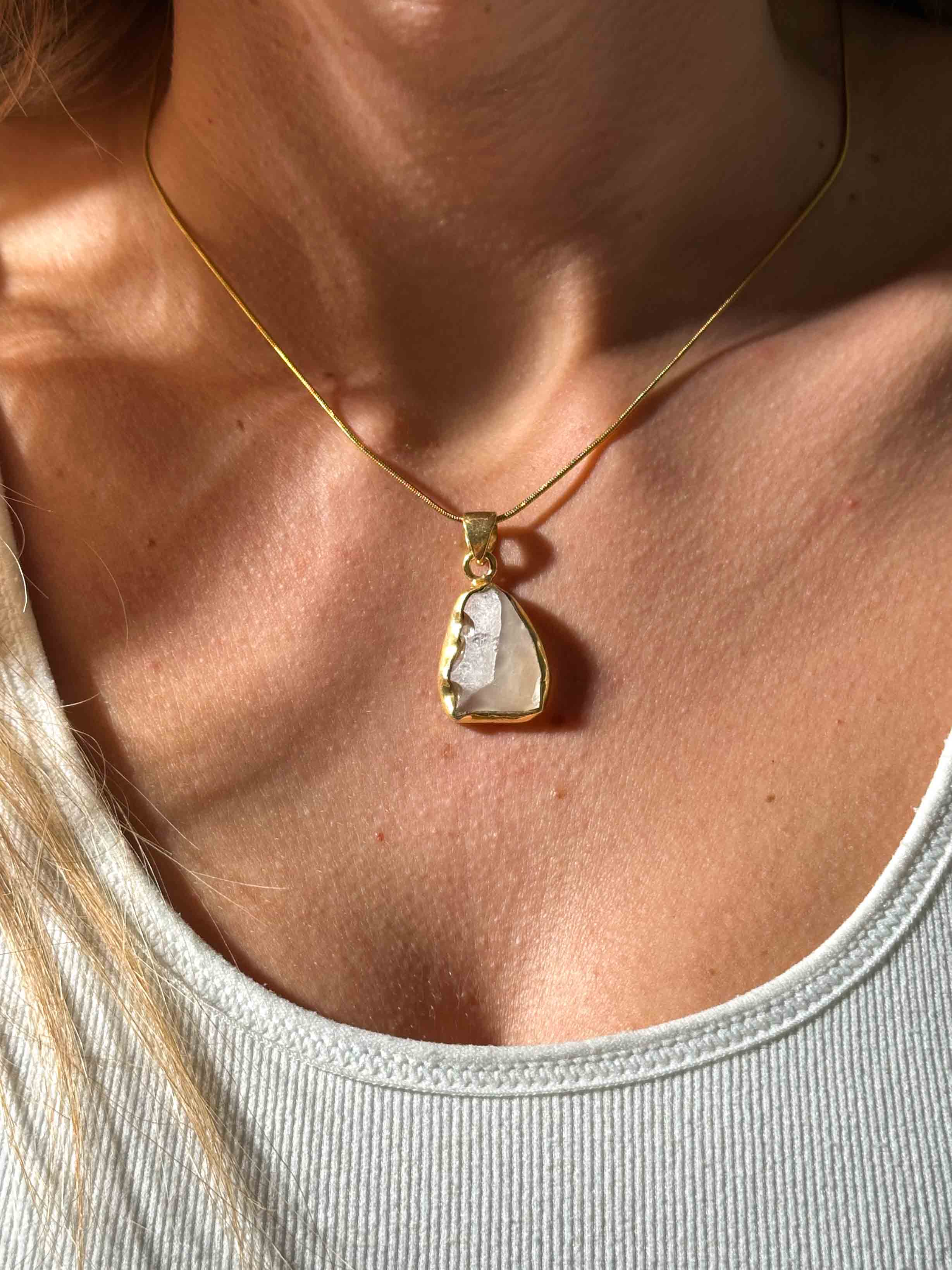 Το κόσμημα είναι κατασκευασμένο από επιχρυσωμένο 24Κ ασήμι 925 και συνοδεύεται από χρυσή ατσάλινη αλυσίδα. Λόγω της επιχρύσωσης, χρειάζεται ιδιαίτερη φροντίδα για να διατηρήσει τη λάμψη και την ανθεκτικότητά του με τον χρόνο.