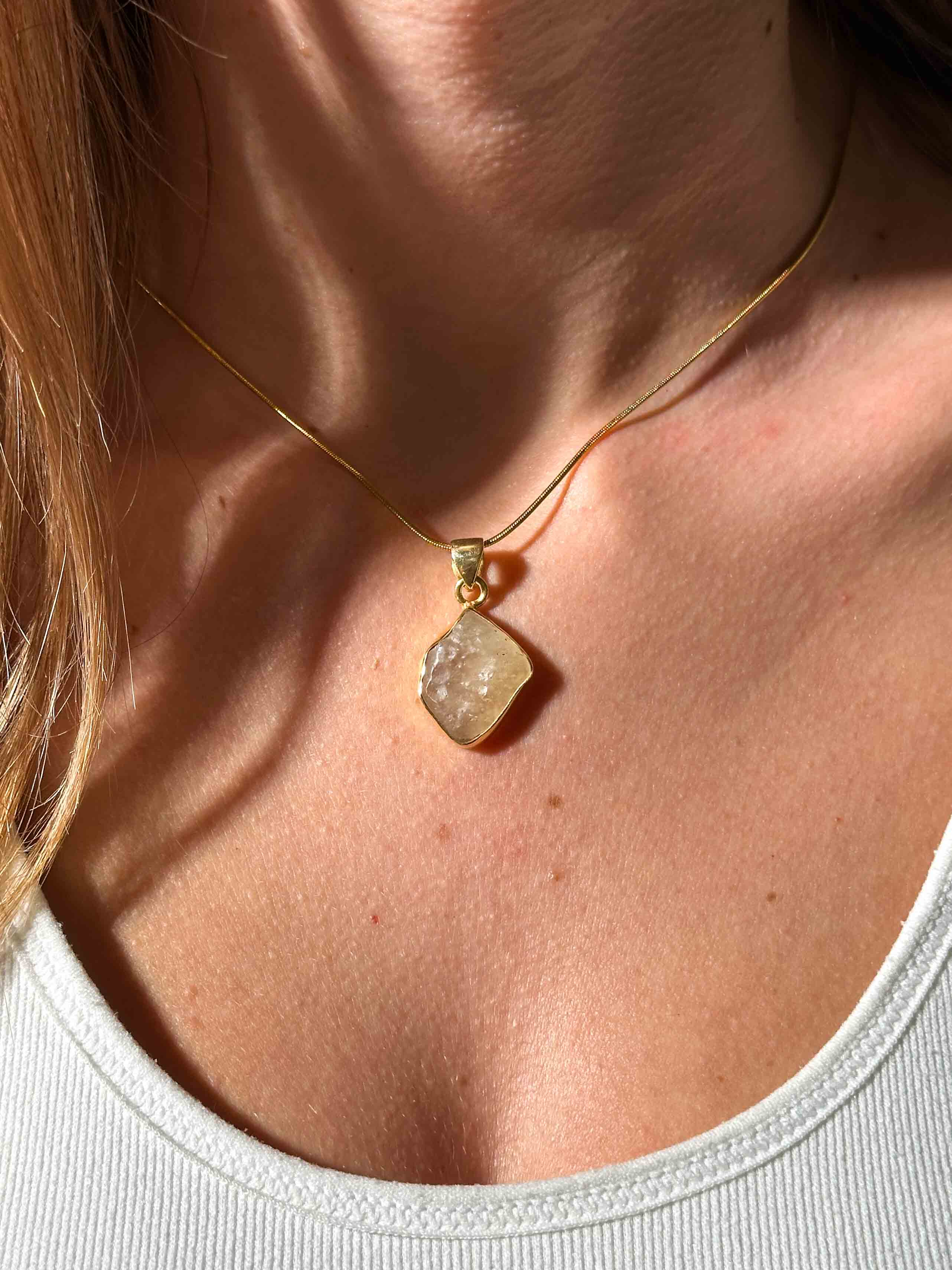 Το κόσμημα είναι κατασκευασμένο από επιχρυσωμένο 24Κ ασήμι 925 και συνοδεύεται από χρυσή ατσάλινη αλυσίδα. Λόγω της επιχρύσωσης, χρειάζεται ιδιαίτερη φροντίδα για να διατηρήσει τη λάμψη και την ανθεκτικότητά του με τον χρόνο.