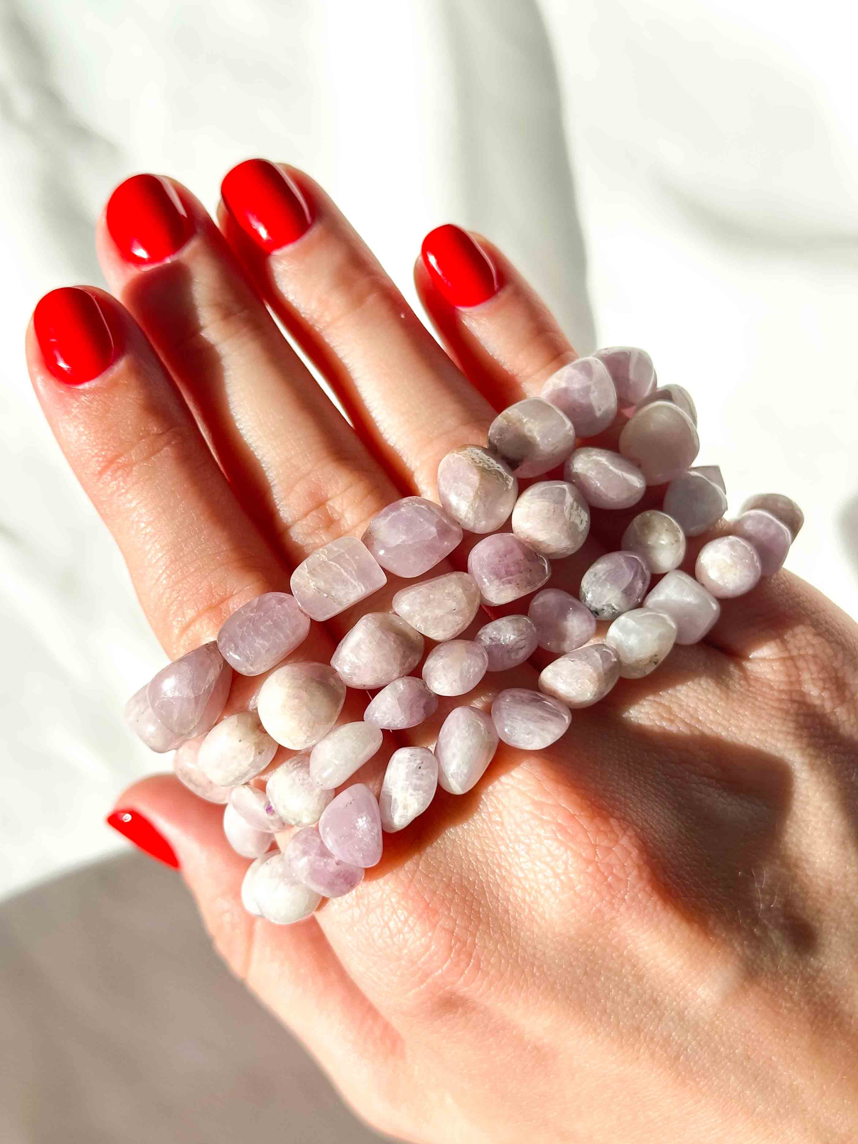 Η πέτρα της αγάπης. Ο Κουνζίτης ενισχύει τη ρομαντική αγάπη. Είναι καλός για επικοινωνία με φίλους και αγαπημένα πρόσωπα. Ο Κουνζιτης είναι επίσης μια πέτρα για την αγάπη του εαυτού, προάγοντας την ταπεινοφροσύνη και την ανεκτικότητα στον εαυτό. Μπορεί να ενισχύσει το ανθρώπινο ενεργειακό πεδίο, να καθαρίσει την αύρα και να καθαρίσει την αρνητική ενέργεια από ένα δωμάτιο ή περιβάλλον.