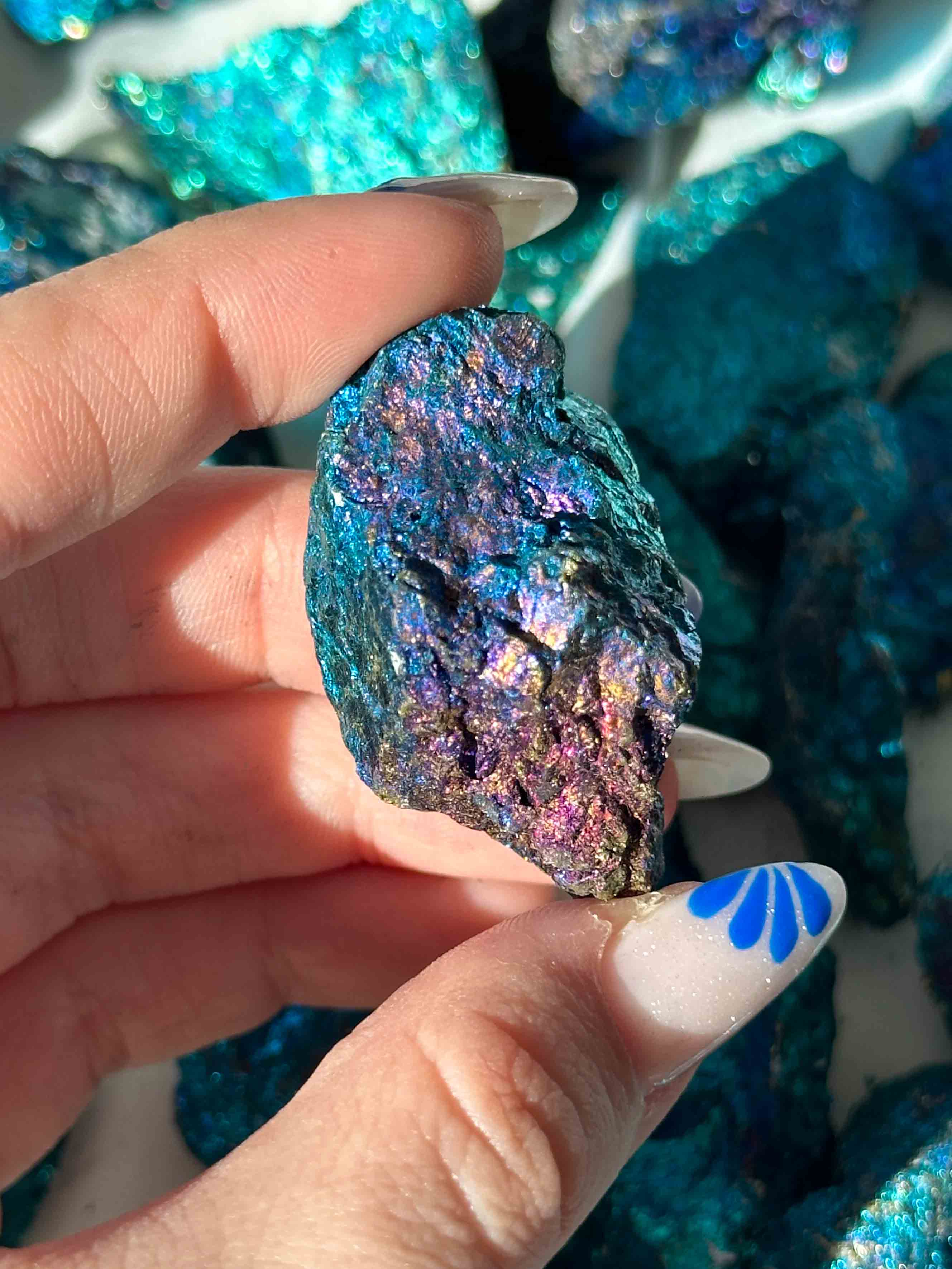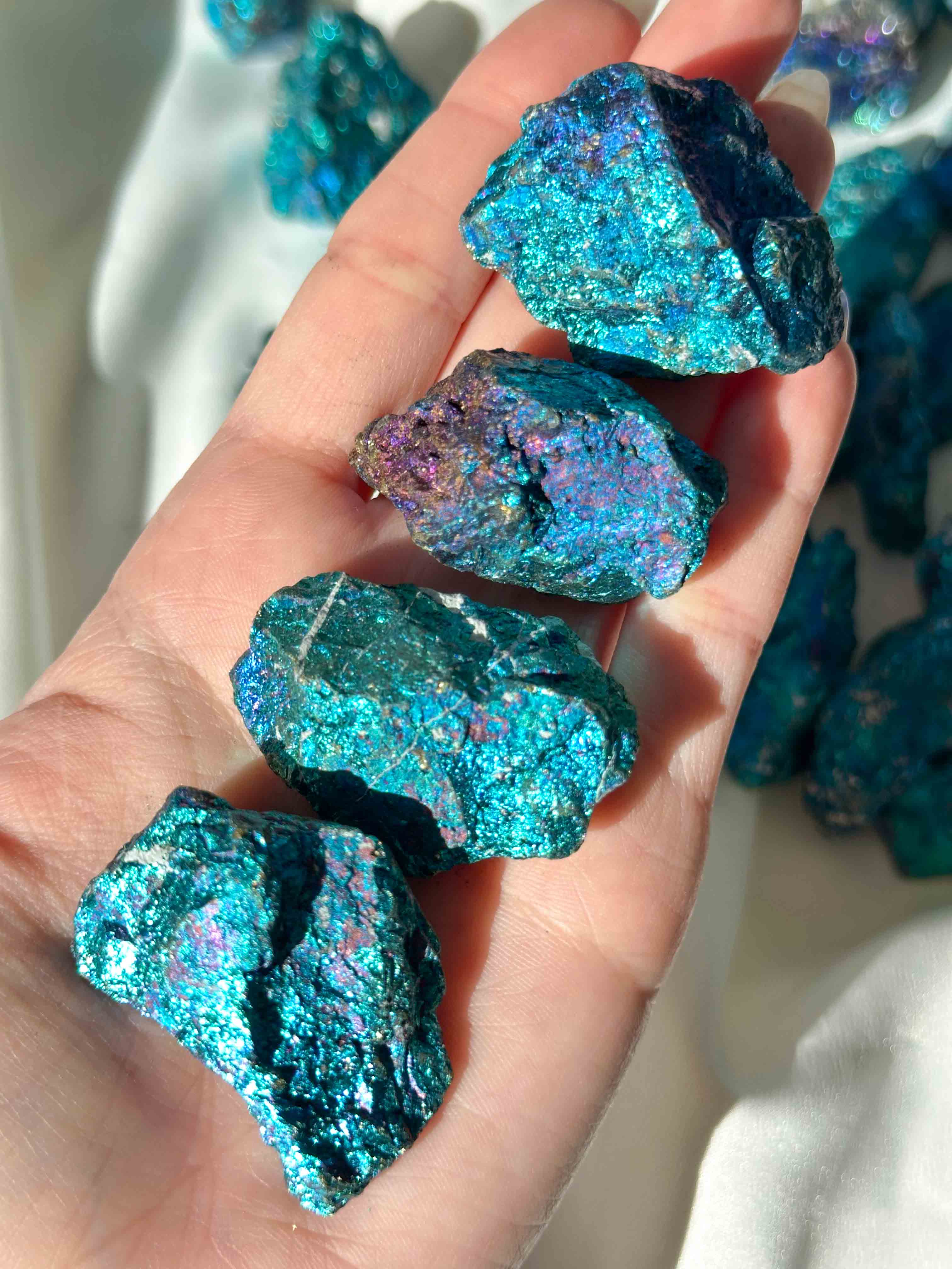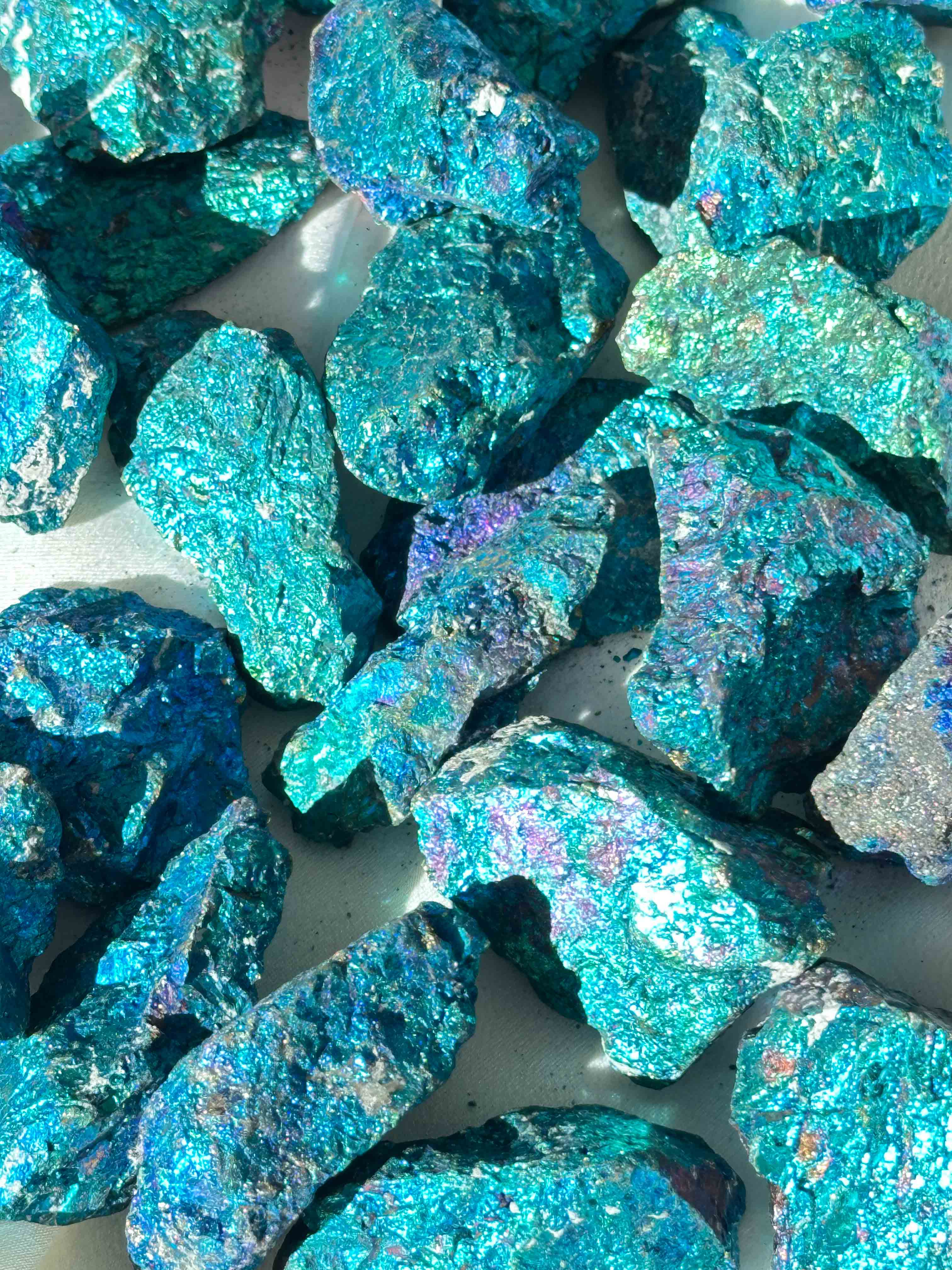 Ο Χαλκοπυρίτης  έχει μια πολύ χαρούμενη ενέργεια που μπορεί να φέρει περισσότερη χαρά στις πνευματικές μας πρακτικές. Μας υπενθυμίζει να μην παίρνουμε τον εαυτό μας, ή την πνευματική μας ζωή, πολύ στα σοβαρά. Ψιθυρίζει στην καρδιά μας ότι το Θείο θέλει να γελάμε και να χορεύουμε όποτε είναι δυνατόν. Το Peacock Ore μας προστατεύει από την αρνητική ενέργεια και μας βοηθά να βρούμε τους ανθρώπους και τις δραστηριότητες που θα μας βοηθήσουν να εξελιχθούμε και να αφυπνιστούμε. Το Peacock Ore συνδέεται με την Kwan Yin, τη θεά της συμπόνιας, και μπορεί να χρησιμοποιηθεί για να προκαλέσει τη βοήθειά της. Όταν χρησιμοποιείται στον διαλογισμό, μπορεί να εμβαθύνει και να ενισχύσει τη σύνδεσή μας τόσο με τη γη από κάτω μας όσο και με τις απέραντες σφαίρες του πνεύματος. Το Peacock Ore μας βοηθά να παραμείνουμε στην παρούσα στιγμή και να βρούμε την ηρεμία όπου κι αν βρισκόμαστε, ανεξάρτητα από τις περιστάσεις.