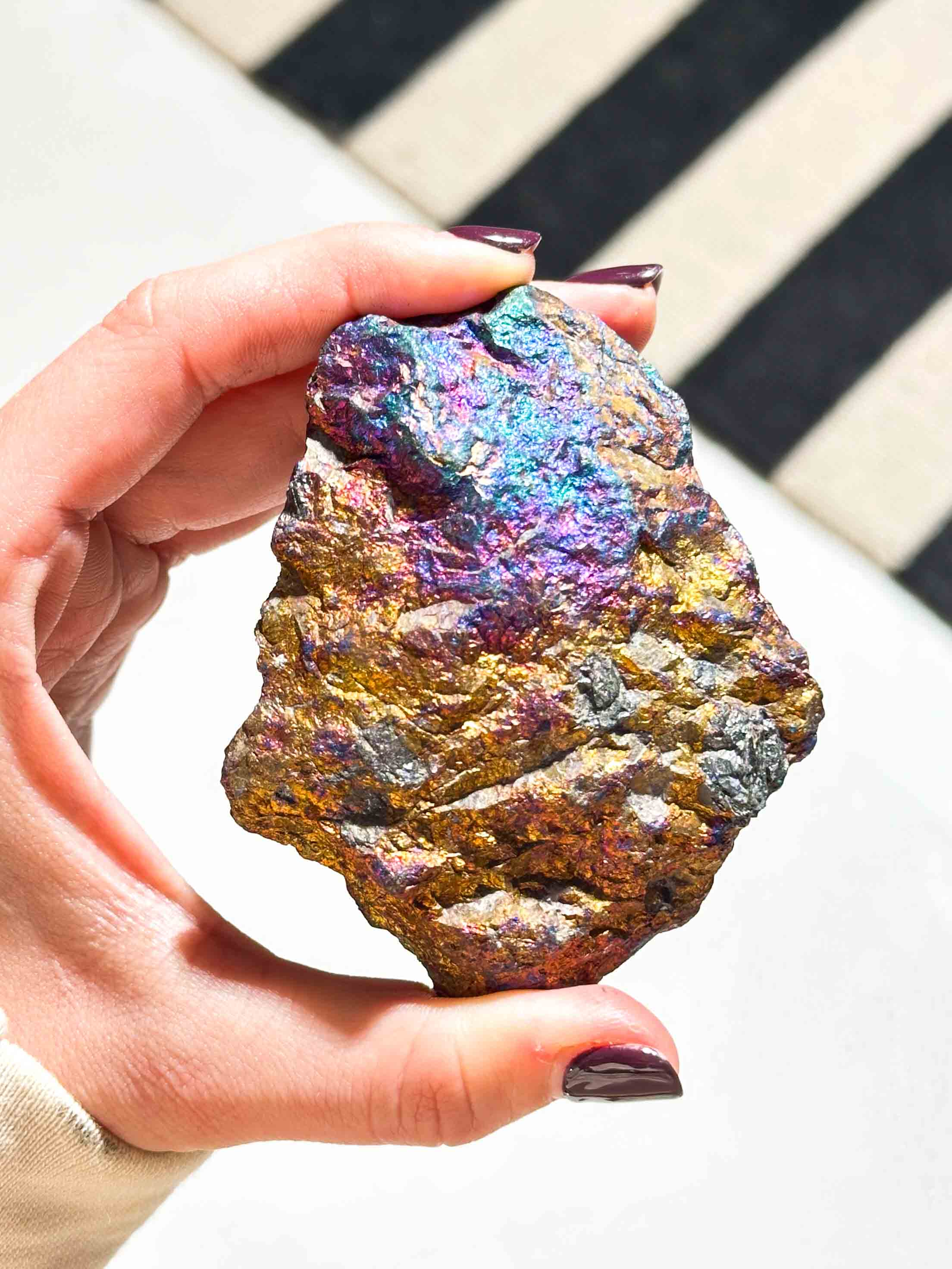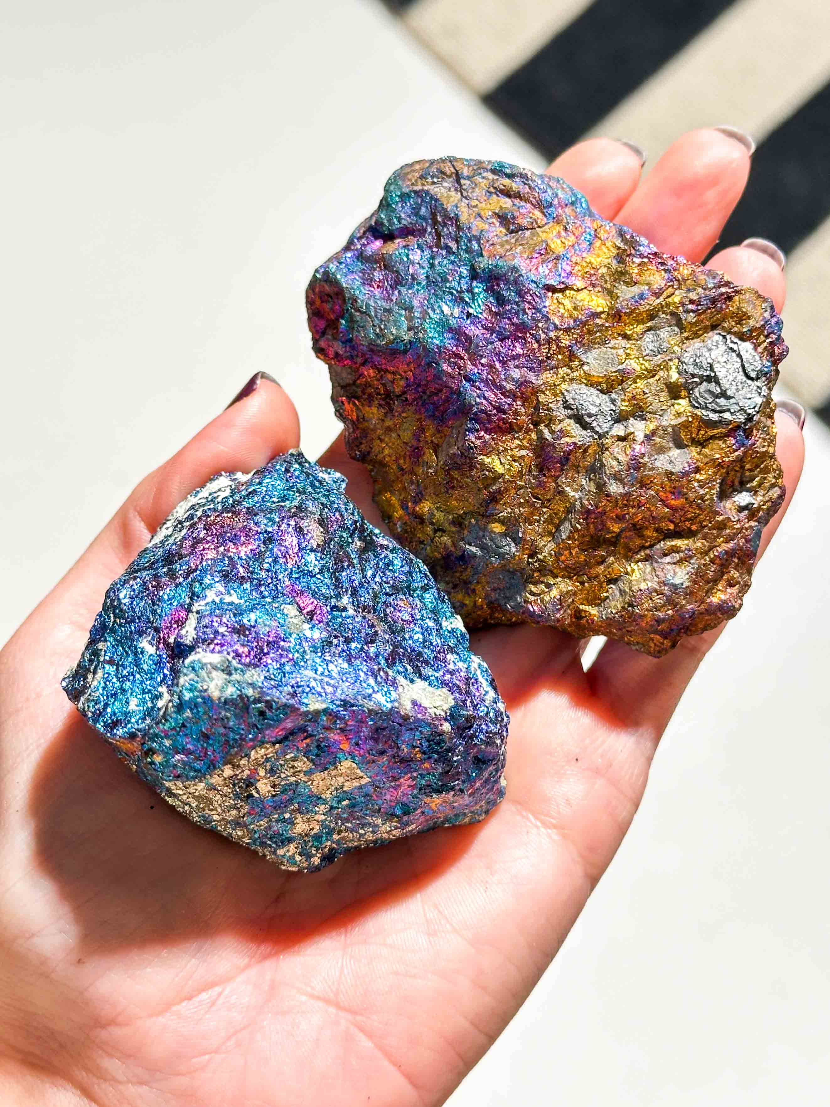 Ο Χαλκοπυρίτης  έχει μια πολύ χαρούμενη ενέργεια που μπορεί να φέρει περισσότερη χαρά στις πνευματικές μας πρακτικές. Μας υπενθυμίζει να μην παίρνουμε τον εαυτό μας, ή την πνευματική μας ζωή, πολύ στα σοβαρά. Ψιθυρίζει στην καρδιά μας ότι το Θείο θέλει να γελάμε και να χορεύουμε όποτε είναι δυνατόν. Το Peacock Ore μας προστατεύει από την αρνητική ενέργεια και μας βοηθά να βρούμε τους ανθρώπους και τις δραστηριότητες που θα μας βοηθήσουν να εξελιχθούμεκαι να αφυπνιστούμε. Το Peacock Ore συνδέεται με την Kwan Yin, τη θεά της συμπόνιας, και μπορεί να χρησιμοποιηθεί για να προκαλέσει τη βοήθειά της. Όταν χρησιμοποιείται στον διαλογισμό, μπορεί να εμβαθύνει και να ενισχύσει τη σύνδεσή μας τόσο με τη γη από κάτω μας όσο και με τις απέραντες σφαίρες του πνεύματος. Το Peacock Ore μας βοηθά να παραμείνουμε στην παρούσα στιγμή και να βρούμε την ηρεμία όπου κι αν βρισκόμαστε, ανεξάρτητα από τις περιστάσεις.