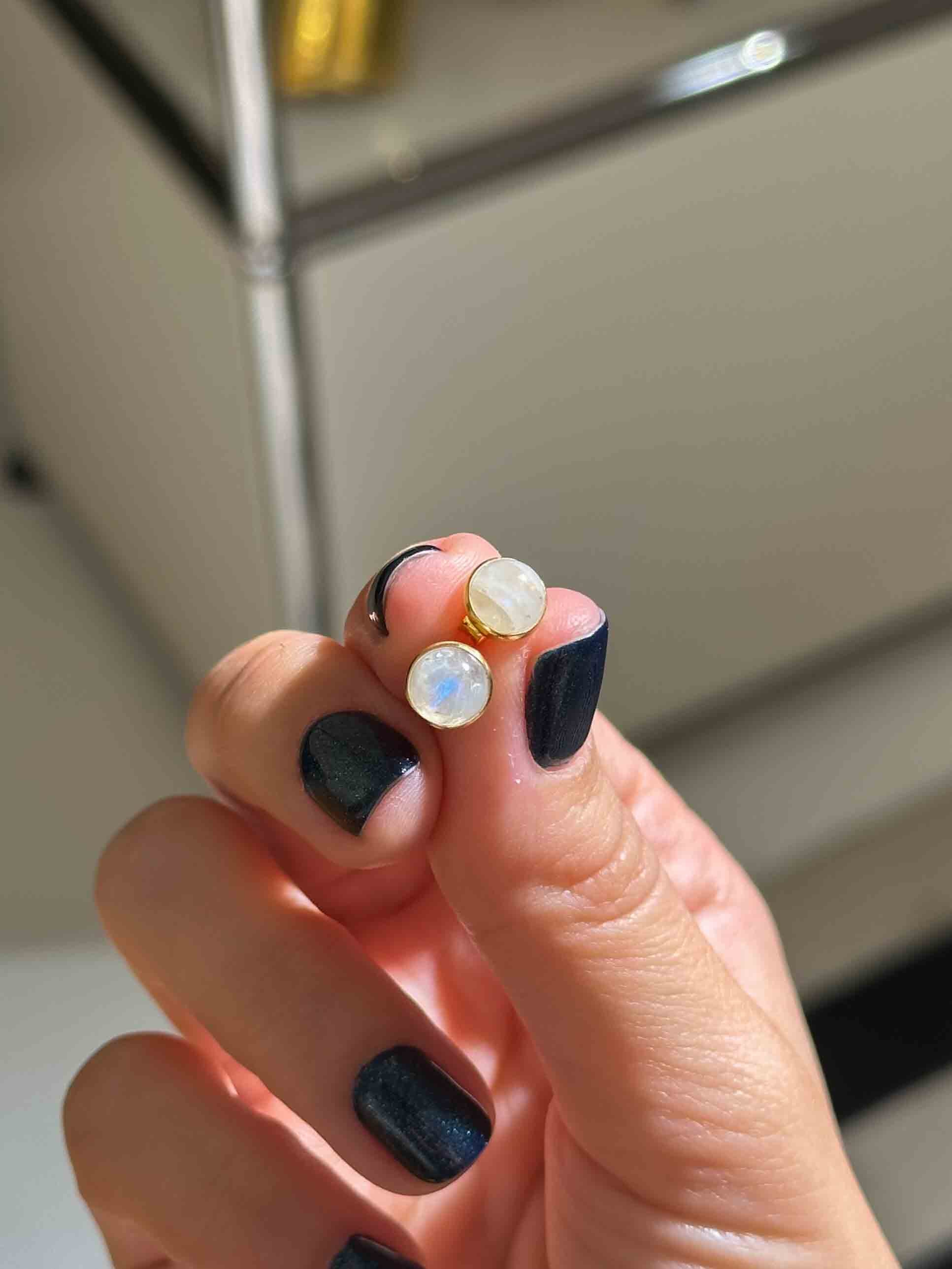 Αφεθείτε στη μαγεία ενός λίθου που αιχμαλωτίζει το φως και το ουράνιο τόξο μέσα του. Η Φεγγαρόπετρα Rainbow στα σκουλαρίκια δημιουργεί συνεχώς παιχνιδίσματα φωτός, αποκαλύπτοντας ιριδίζουσες αποχρώσεις που αλλάζουν με κάθε κίνηση. Κάθε ζευγάρι είναι μοναδικό, σαν να κρατάτε μαζί σας τη μαγεία του φεγγαριού και τις δονήσεις ενός μικρού ουράνιου τόξου.