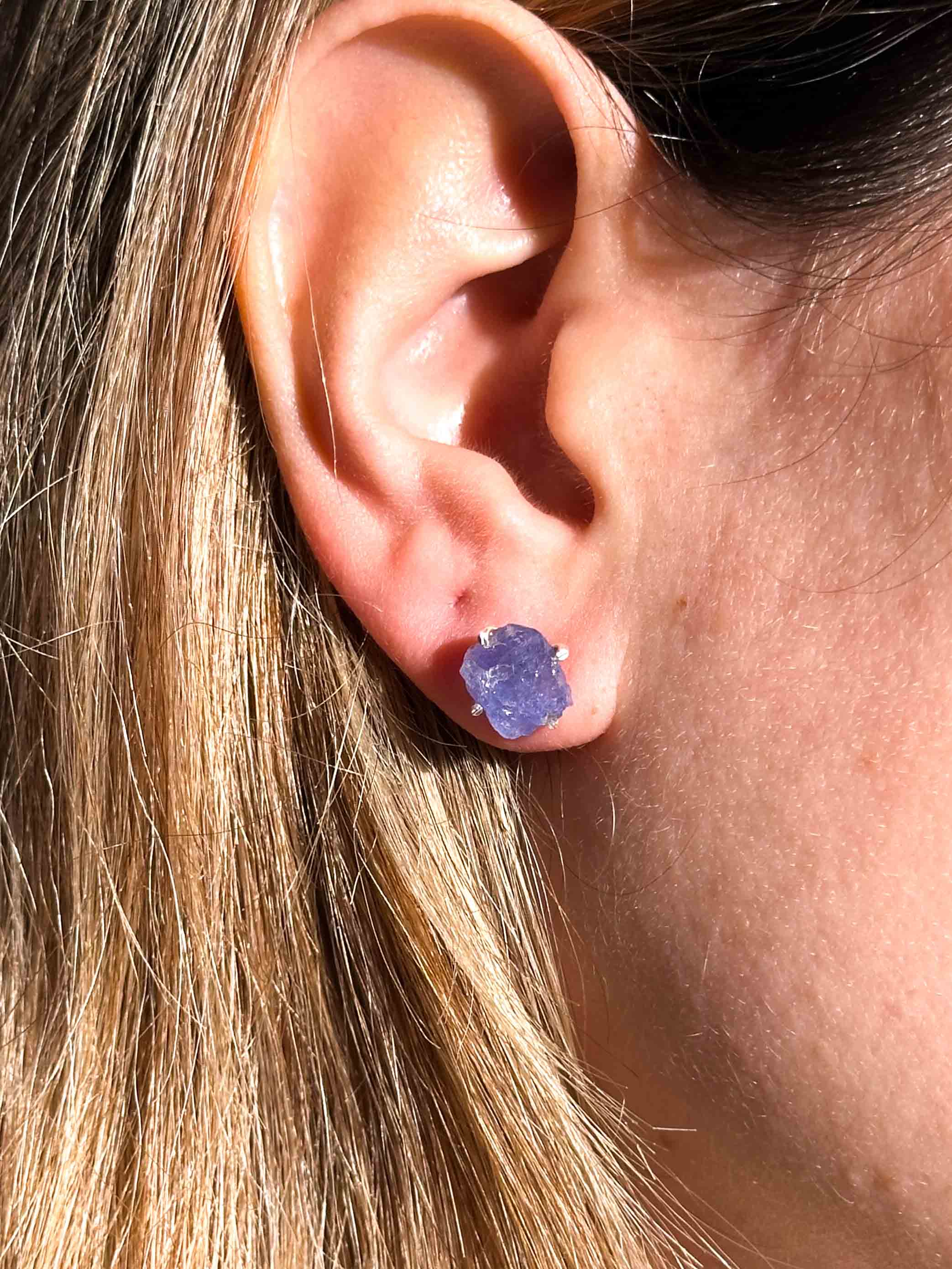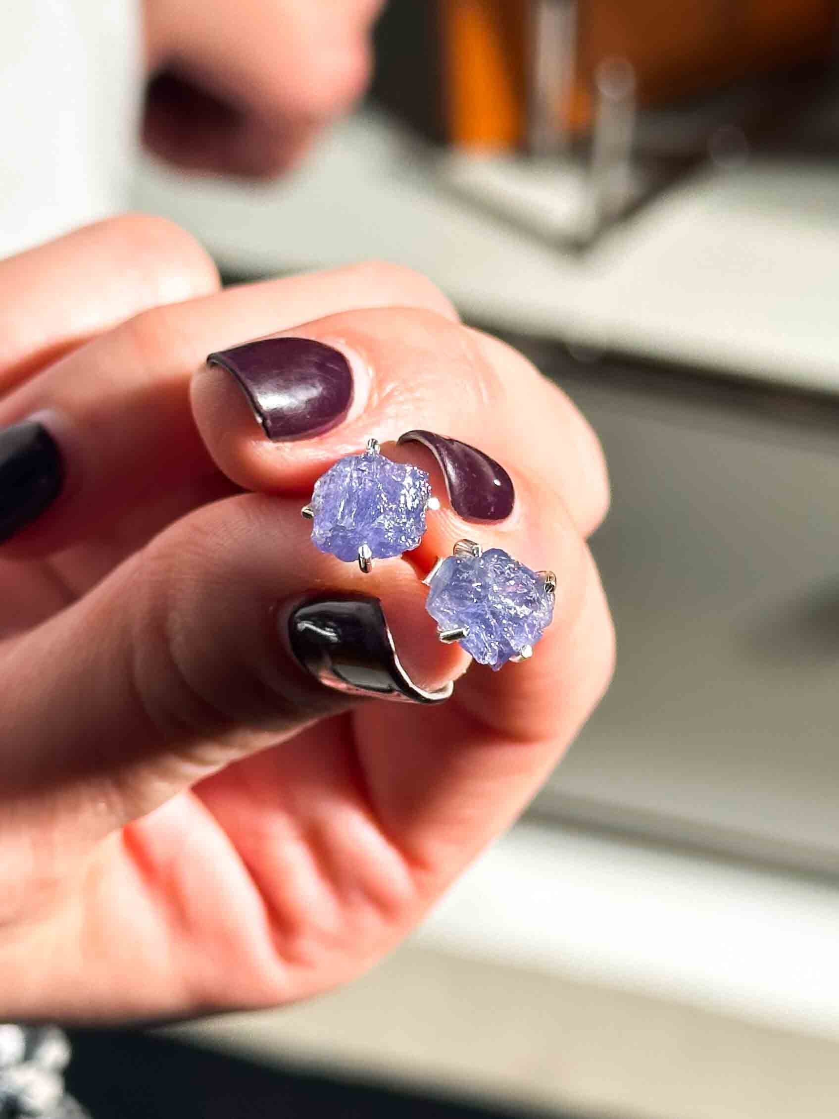 Η φυσική ομορφιά σε πρώτο πλάνο. Αυτά τα καρφωτά σκουλαρίκια συνδυάζουν την κομψότητα του μασίφ Ασήμι 925 με την οργανική, ακατέργαστη γοητεία του Τανζανίτη. Κάθε πέτρα έχει το δικό της μοναδικό σχήμα και υφή, αναδεικνύοντας τις υπέροχες μπλε-μοβ αποχρώσεις αυτού του σπάνιου λίθου. Ένα κόσμημα που ξεχωρίζει για την αυθεντικότητά του.