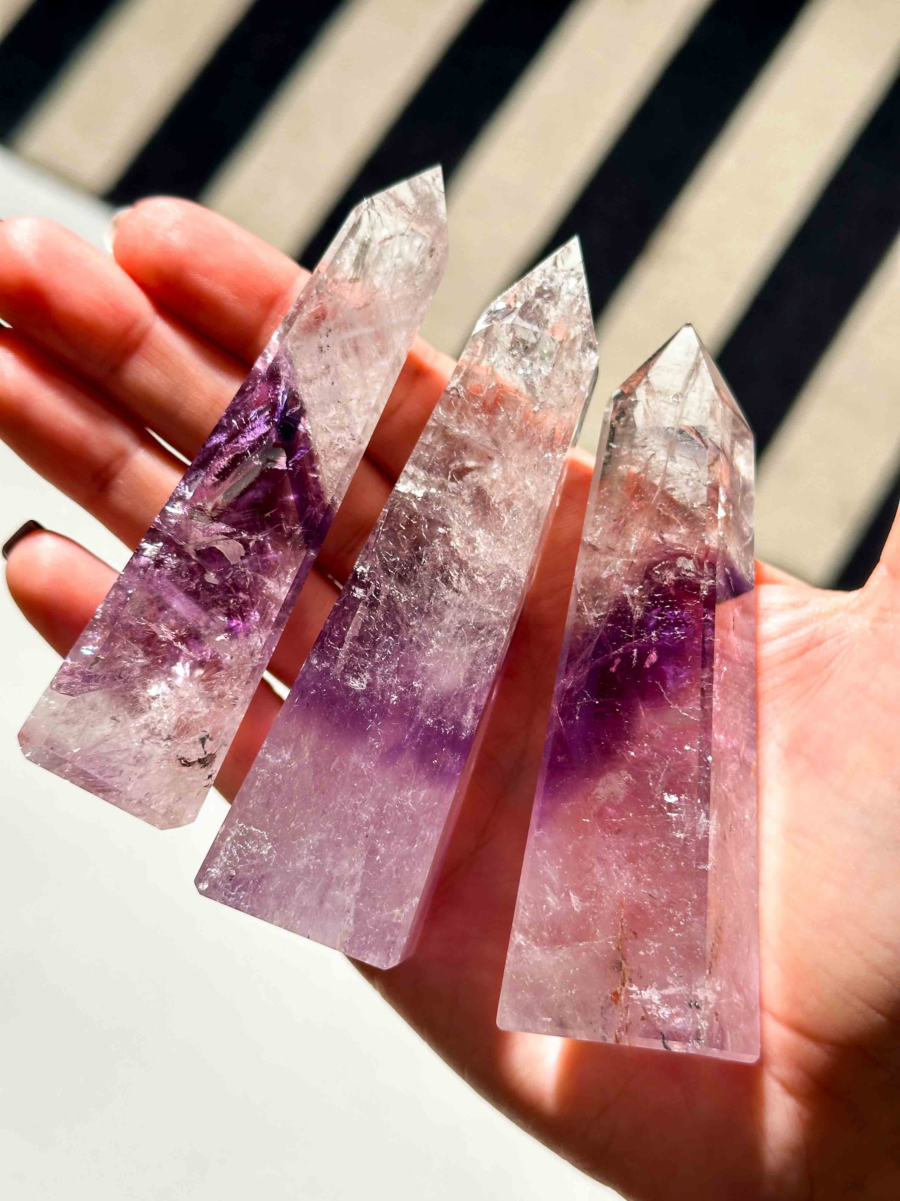 Ο Phantom Αμέθυστος είναι ένας μοναδικός κρύσταλλος, που ξεχωρίζει χάρη στα “φαντάσματα” που σχηματίζονται στο εσωτερικό του – λεπτές στρώσεις από παλαιότερα στάδια ανάπτυξης του κρυστάλλου, οι οποίες μοιάζουν με σκιές ή βουνά που αιωρούνται μέσα του. Αυτές οι φυσικές “αναμνήσεις” συμβολίζουν την εσωτερική εξέλιξη, την πρόοδο και την πνευματική ωρίμανση.
