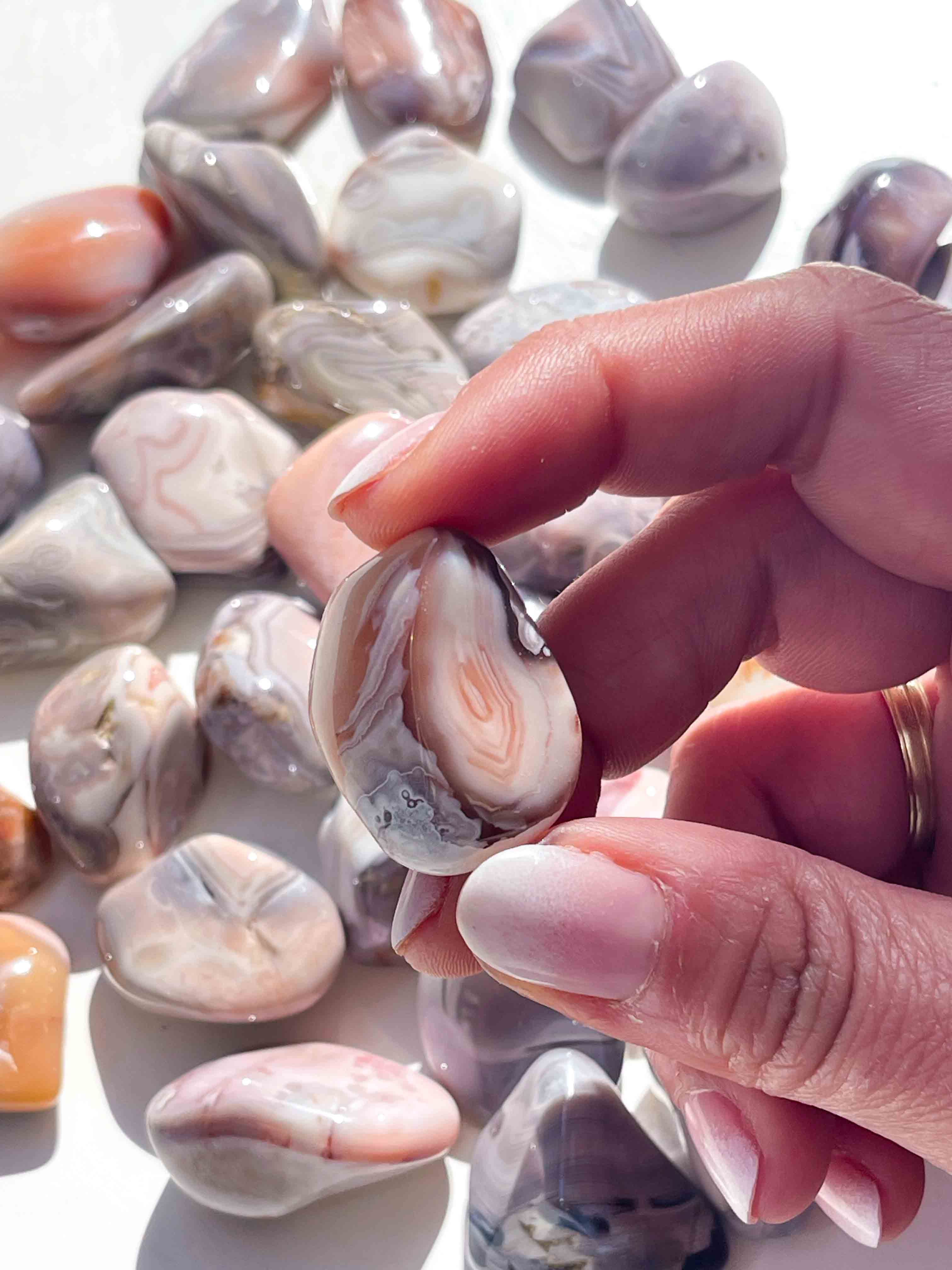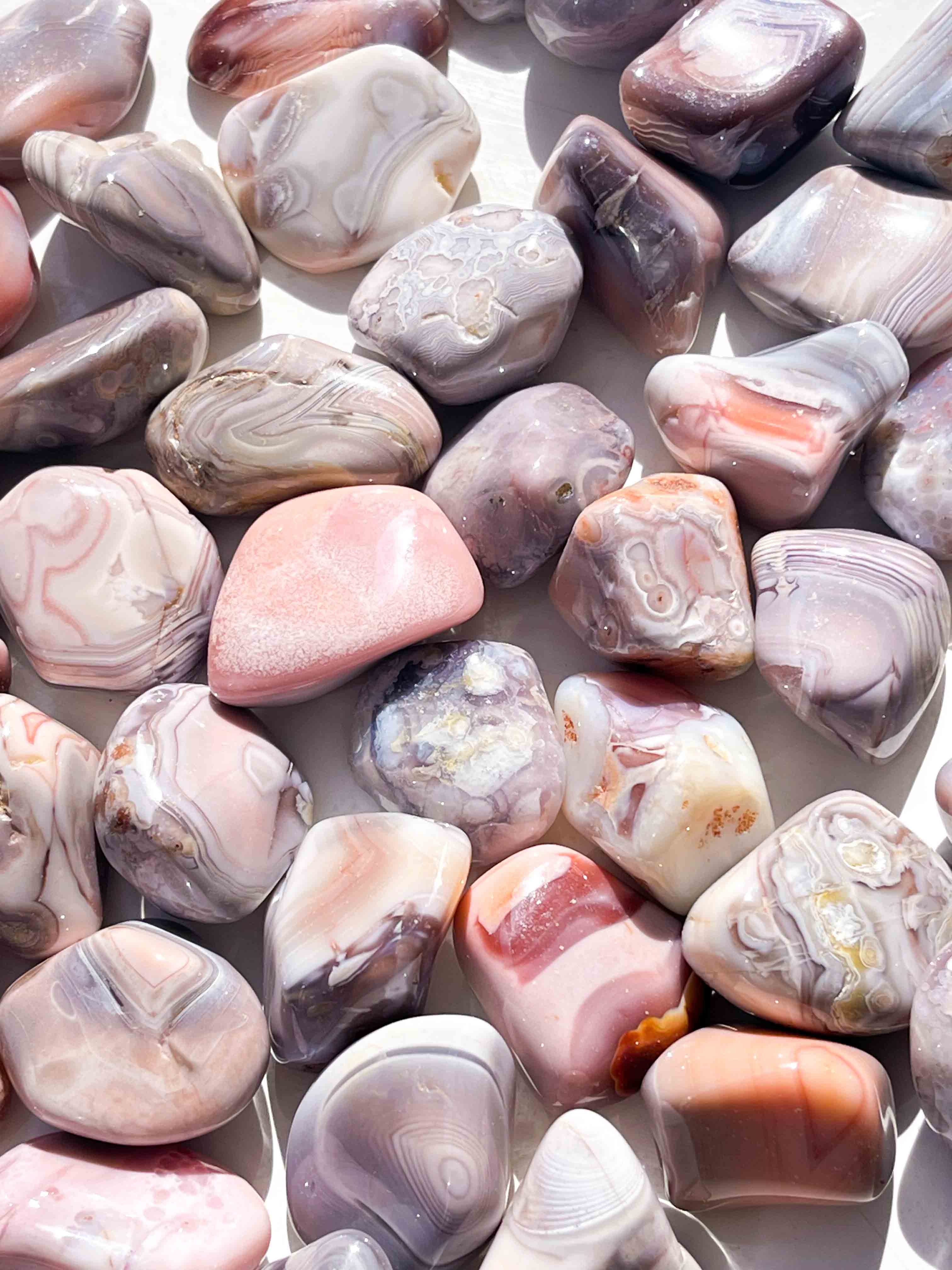 Ο Αχάτης Μποτσουάνα είναι ο υψηλότερος δονητικός αχάτης που γνωρίζουμε και προσφέρει έντονη ενέργεια που αντηχεί απευθείας με το τρίτο μάτι και το τσάκρα του στέμματος. Κάποιος θα αρχίσει να αισθάνεται περισσότερη επαφή με τον ανώτερο εαυτό του απλά κουβαλώντας αυτή την πέτρα πάνω του. Το κανάλι μεταξύ του τρίτου ματιού και του τσάκρα του στέμματος ενισχύεται όταν διαλογίζεστε με αυτόν επιτρέποντας σας να κατανοήσετε την ενέργεια του ευκολότερα. Ο Αχάτης Μποτσουάνα είναι το κλειδί για να ανοίξετε το μυαλό σας σε μια πληθώρα γνώσεων που περιμένουν να γειωθούν και να χρησιμοποιηθούν στην πορεία της ζωής σας.