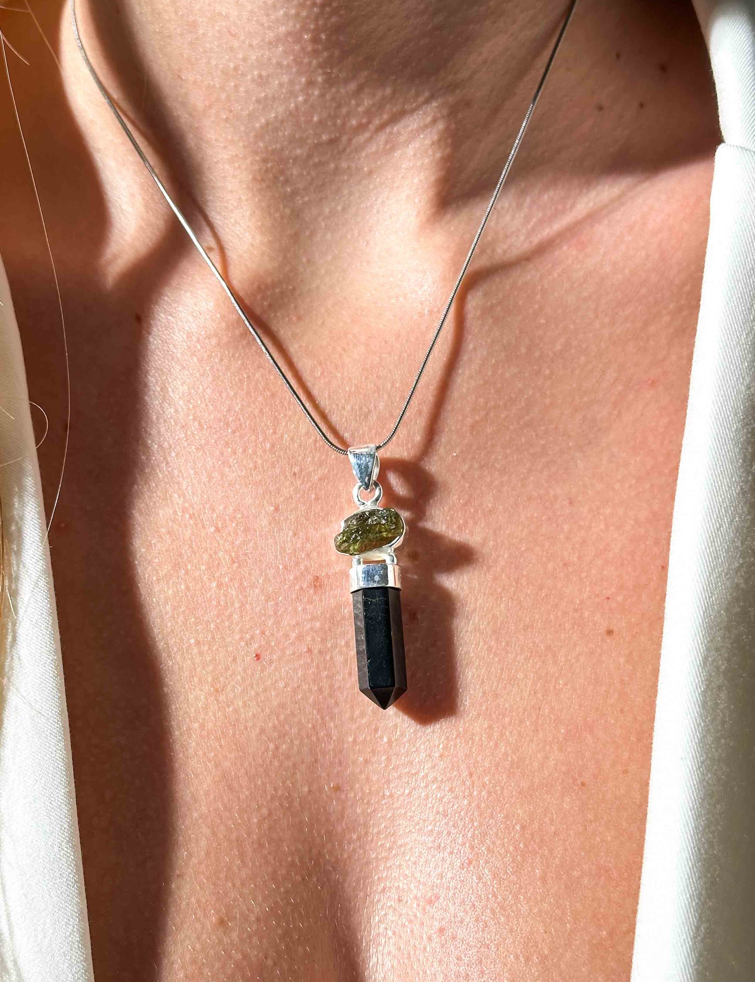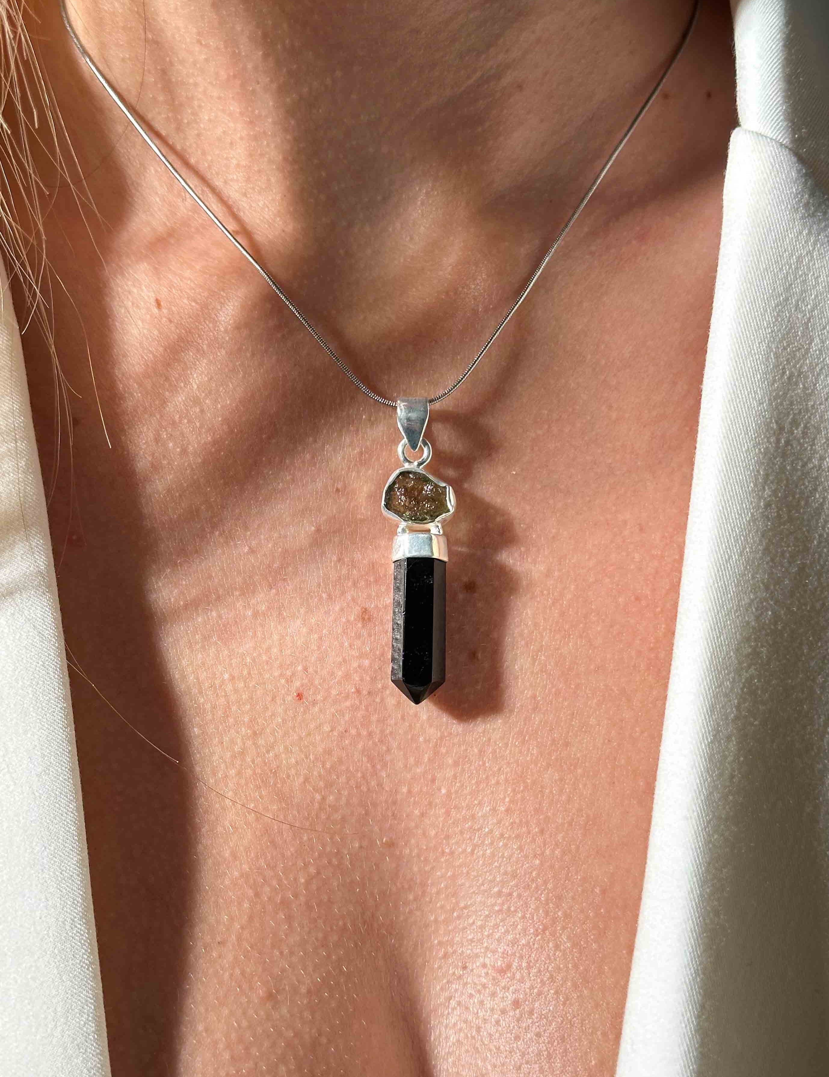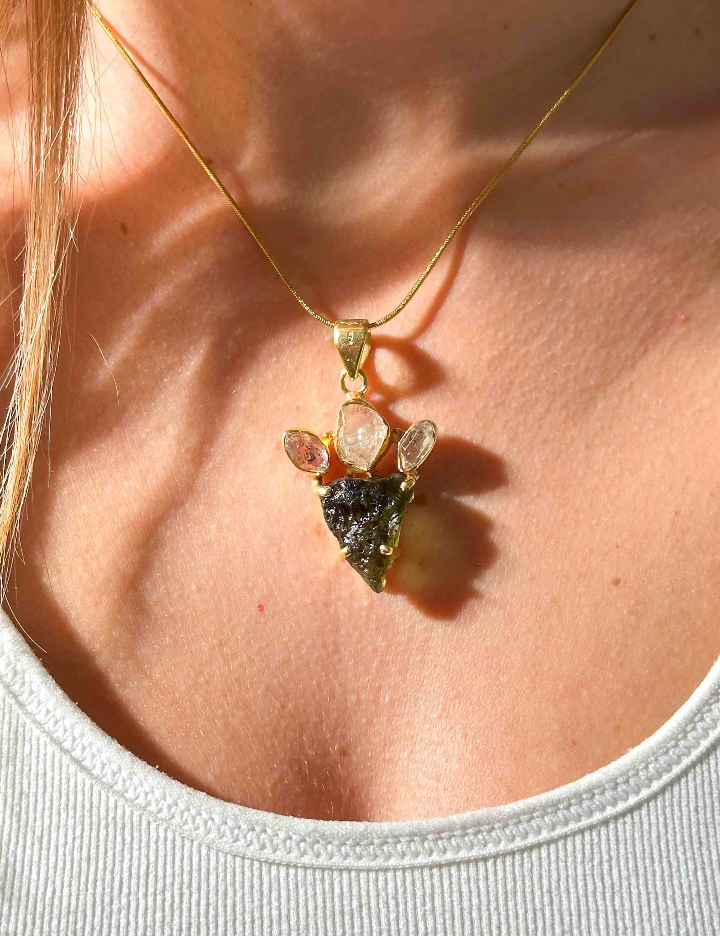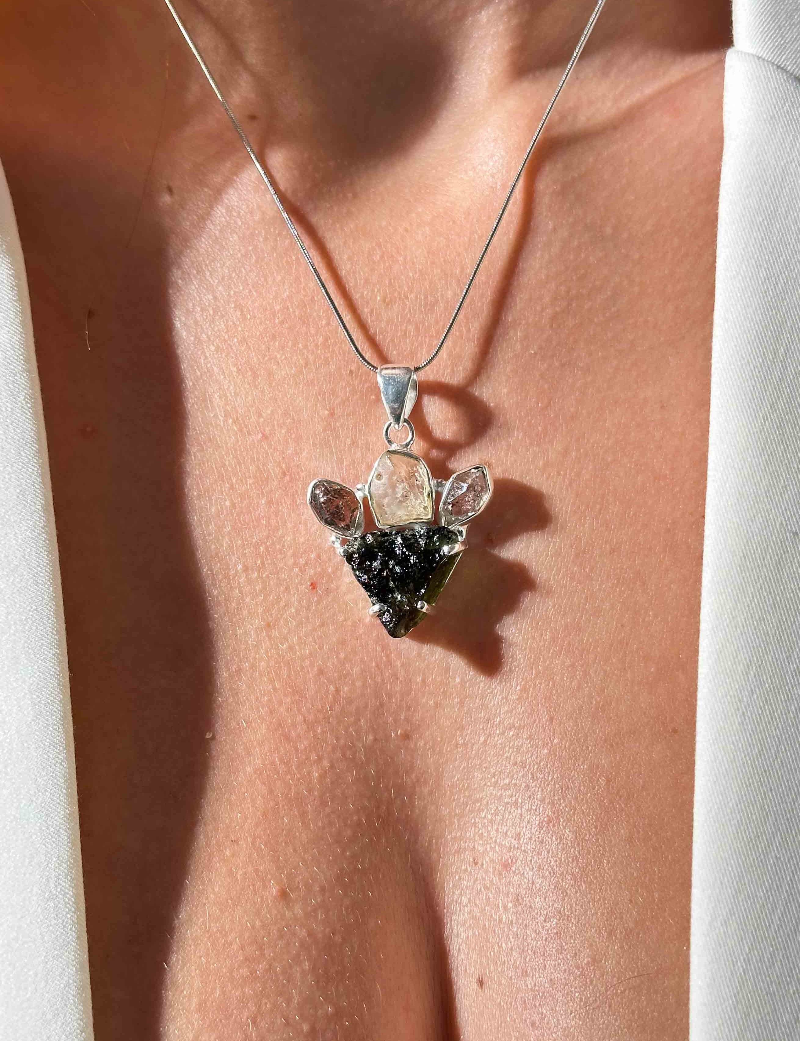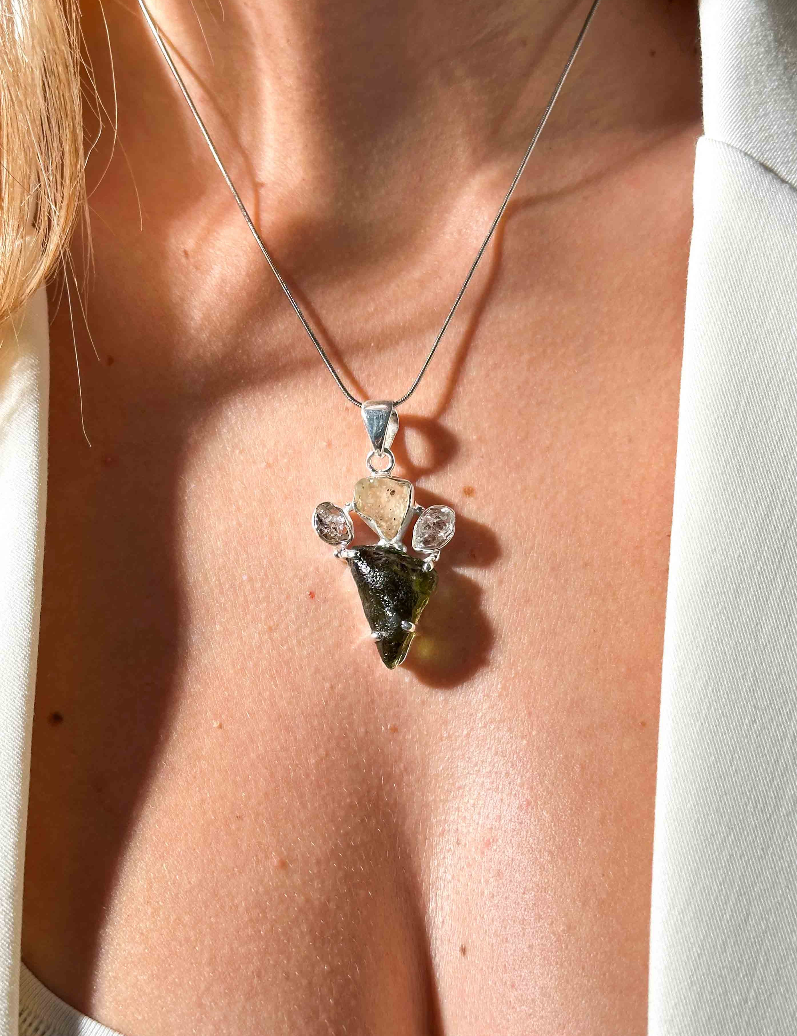 Μολδαβίτης • Διαμάντιa Herkimer • Γυαλί Λιβυκής Ερήμου Α.925 05