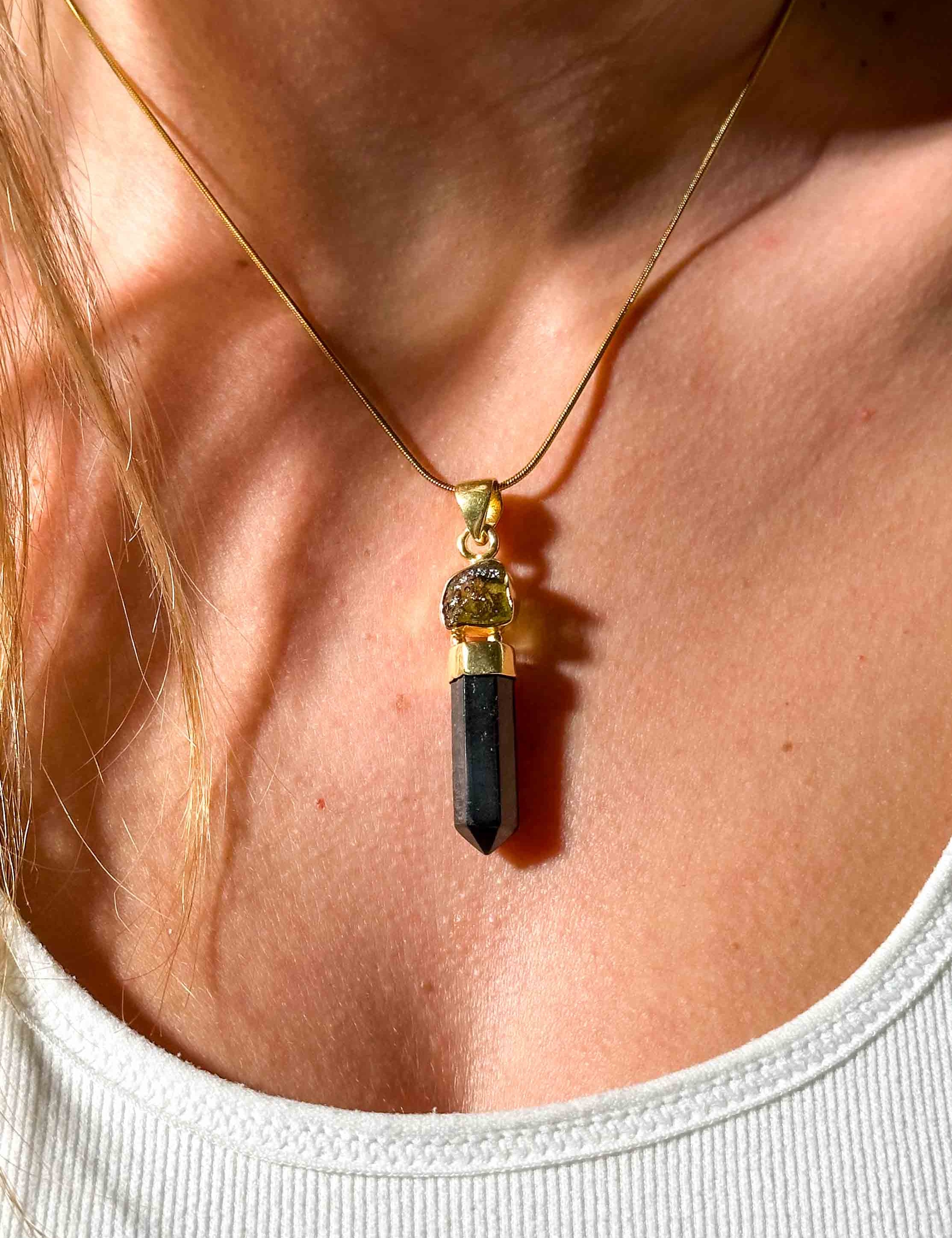 Μαύρη Τουρμαλίνη & Μολδαβίτης Επιχρυσωμένο Α.925 01