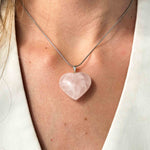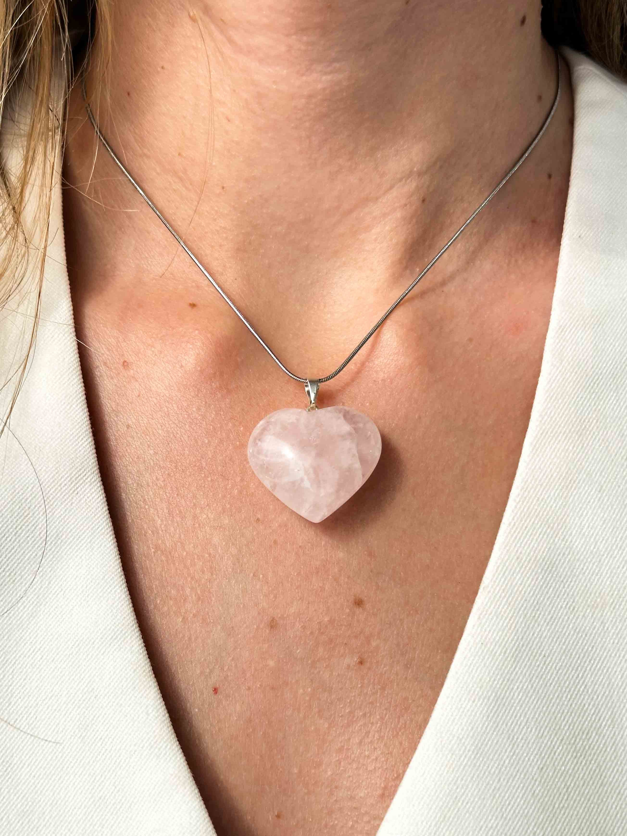 Ο ροζ χαλαζίας είναι μια πέτρα καθαρής αγάπης. Βοηθά στην αφύπνιση της καρδιάς με τις πιο αγνές δονήσεις αγάπης, επιτρέποντας σε κάποιον να βρει αγάπη για τον εαυτό του και τους άλλους. Αυτή η αφύπνιση της καρδιάς παρέχει επίσης βαθιά συναισθήματα προσωπικής ολοκλήρωσης και ικανοποίησης. Βοηθά στον πνευματικό συντονισμό με τη Γη, το Σύμπαν και το Θείο που επιτρέπει σε κάποιον να συνδέσει βαθιά τη δική του καρδιά με τις καρδιές των άλλων.