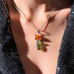 • Κάθε κομμάτι είναι μοναδικό, καθώς τόσο ο ακατέργαστος Μολδαβίτης όσο και το φυσικό Κεχριμπάρι έχουν το δικό τους ξεχωριστό σχήμα.