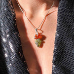 Όταν η κοσμική ενέργεια των άστρων συναντά την αρχαία σοφία των δέντρων. Αυτό το χειροποίητο μενταγιόν συνδυάζει την υψηλή δόνηση του πράσινου Μολδαβίτη με τη θερμή, θεραπευτική ενέργεια του Κεχριμπαριού Βαλτικής, δεμένα σε κομψό Ασήμι 925.