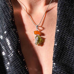 Όταν η κοσμική ενέργεια των άστρων συναντά την αρχαία σοφία των δέντρων. Αυτό το χειροποίητο μενταγιόν συνδυάζει την υψηλή δόνηση του πράσινου Μολδαβίτη με τη θερμή, θεραπευτική ενέργεια του Κεχριμπαριού Βαλτικής, δεμένα σε κομψό Ασήμι 925.