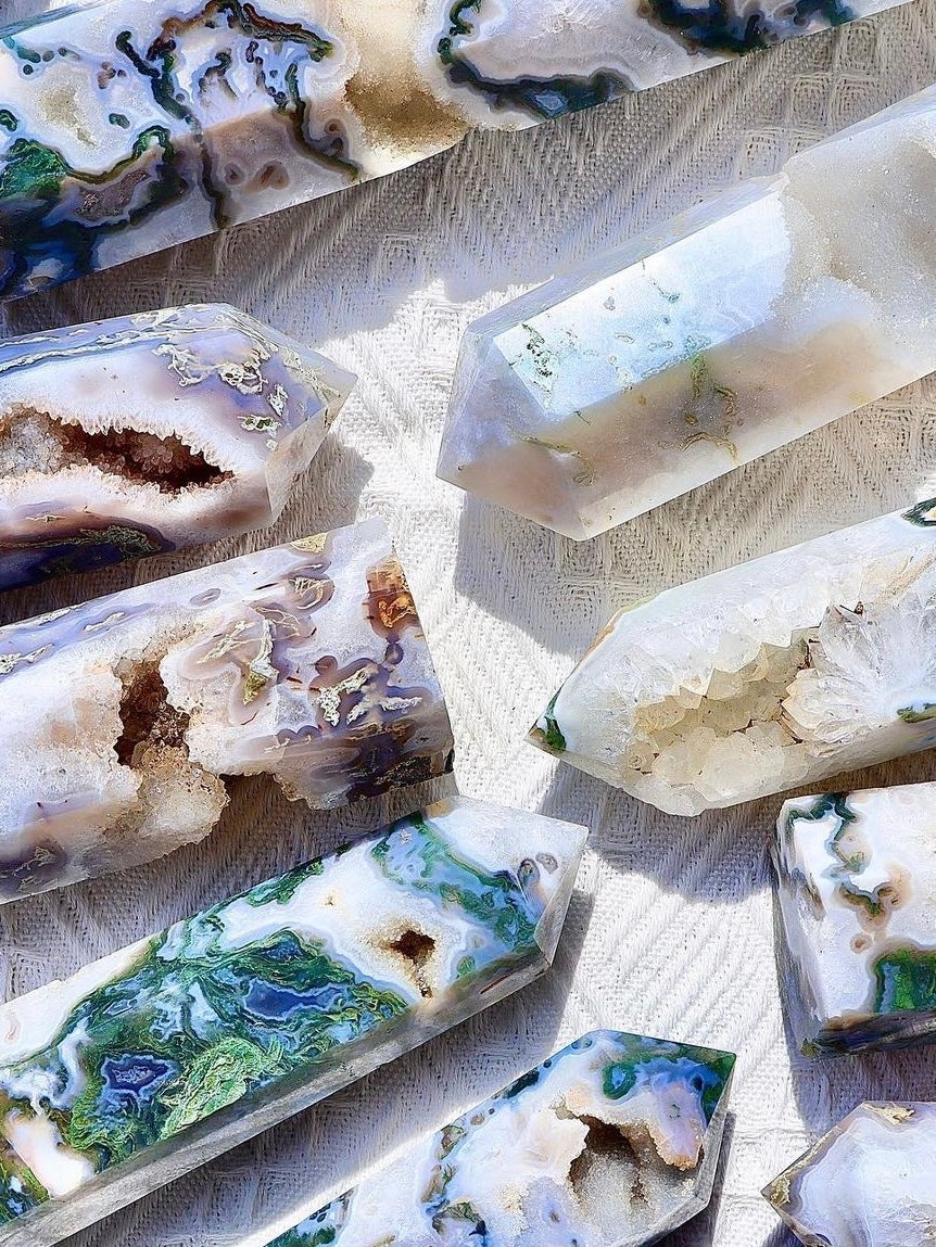 Η πέτρα της ενίσχυσης. Ο Βρυώδης Αχάτης είναι μια πέτρα για τον πλούτο και προσελκύει όλα τα πράγματα σε αφθονία. Αυτή η πέτρα είναι σαν μια μπάλα της Ενέργειας της Γης. Συνδέει τον ιδιοκτήτη με τη Γη και βοηθά στη ροή της ενέργειας του σώματός σας. Θεωρείται ότι επιστρέφει υπερβολικές ενέργειες πίσω στη φύση και απελευθερώνει παλιές συνήθειες και ανησυχίες για να προωθήσει την ανάπτυξη.