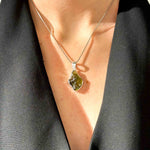 Ανακαλύψτε τη γήινη γοητεία και την κοσμική ενέργεια με αυτό το μοναδικό μενταγιόν Μολδαβίτη. Το κόσμημα διαθέτει έναν αυθεντικό, ακατέργαστο λίθο Μολδαβίτη, με την χαρακτηριστική ανάγλυφη υφή και το βαθύ πράσινο χρώμα του, δεμένο προσεκτικά σε Ασήμι 925 (Sterling Silver). Το λιτό και κομψό ασημένιο δέσιμο αναδεικνύει τη φυσική ομορφιά του λίθου, επιτρέποντας στο φως να διαπερνά την ημιδιαφανή δομή του.
