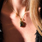 Φορέστε ένα κομμάτι του σύμπαντος στον λαιμό σας. Αυτό το εντυπωσιακό μενταγιόν φιλοξενεί έναν αυθεντικό, ακατέργαστο Μολδαβίτη, δεμένο αριστοτεχνικά σε Ασήμι 925 με πολυτελή επιχρύσωση 24 καρατίων.