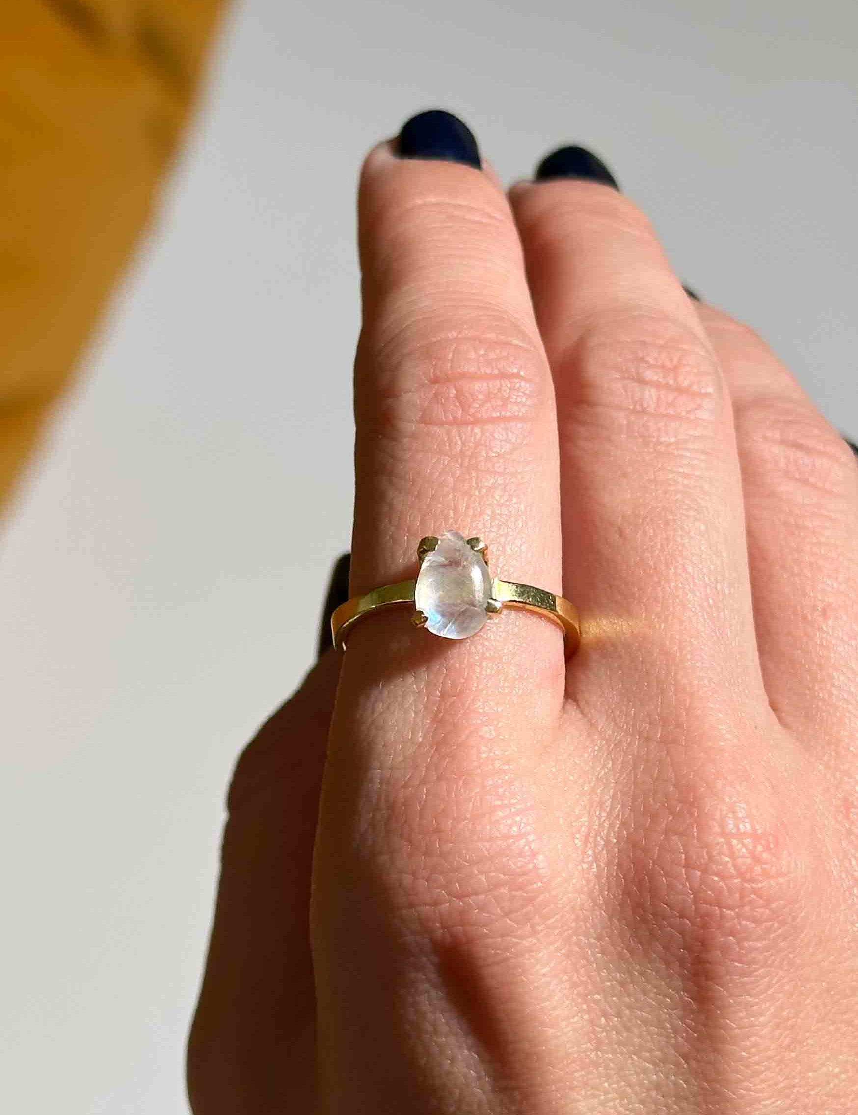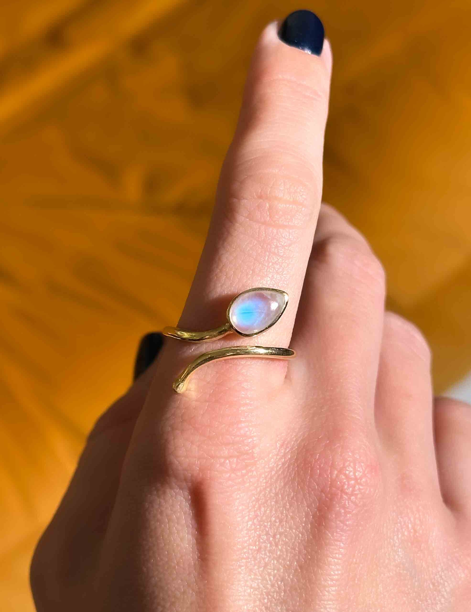 Φεγγαρόπετρα Rainbow Μονόπετρο Δάκρυ Α.925 Επιχρυσωμένο