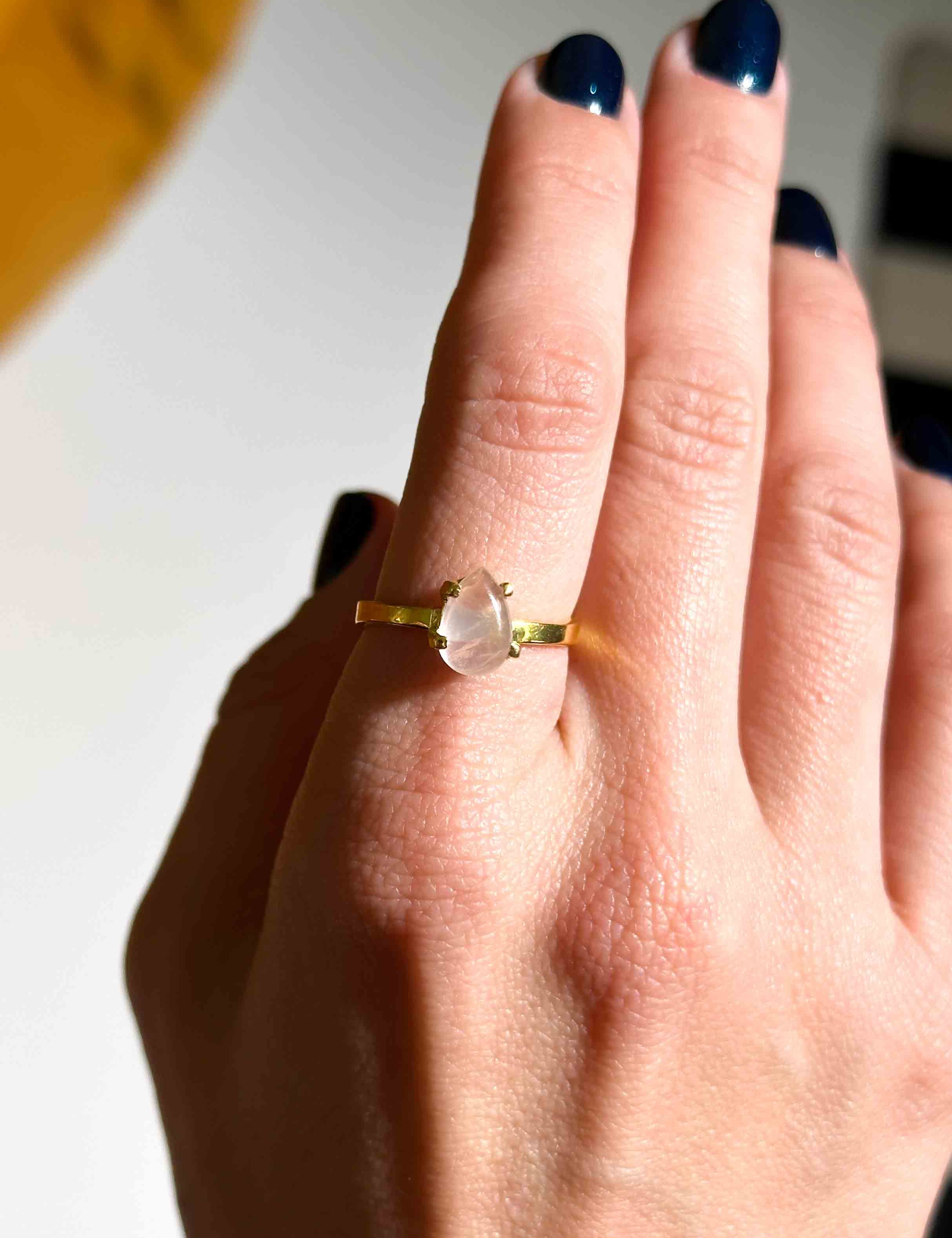 Ροζ Χαλαζίας Μονόπετρο Δάκρυ Α.925 Επιχρυσωμένο