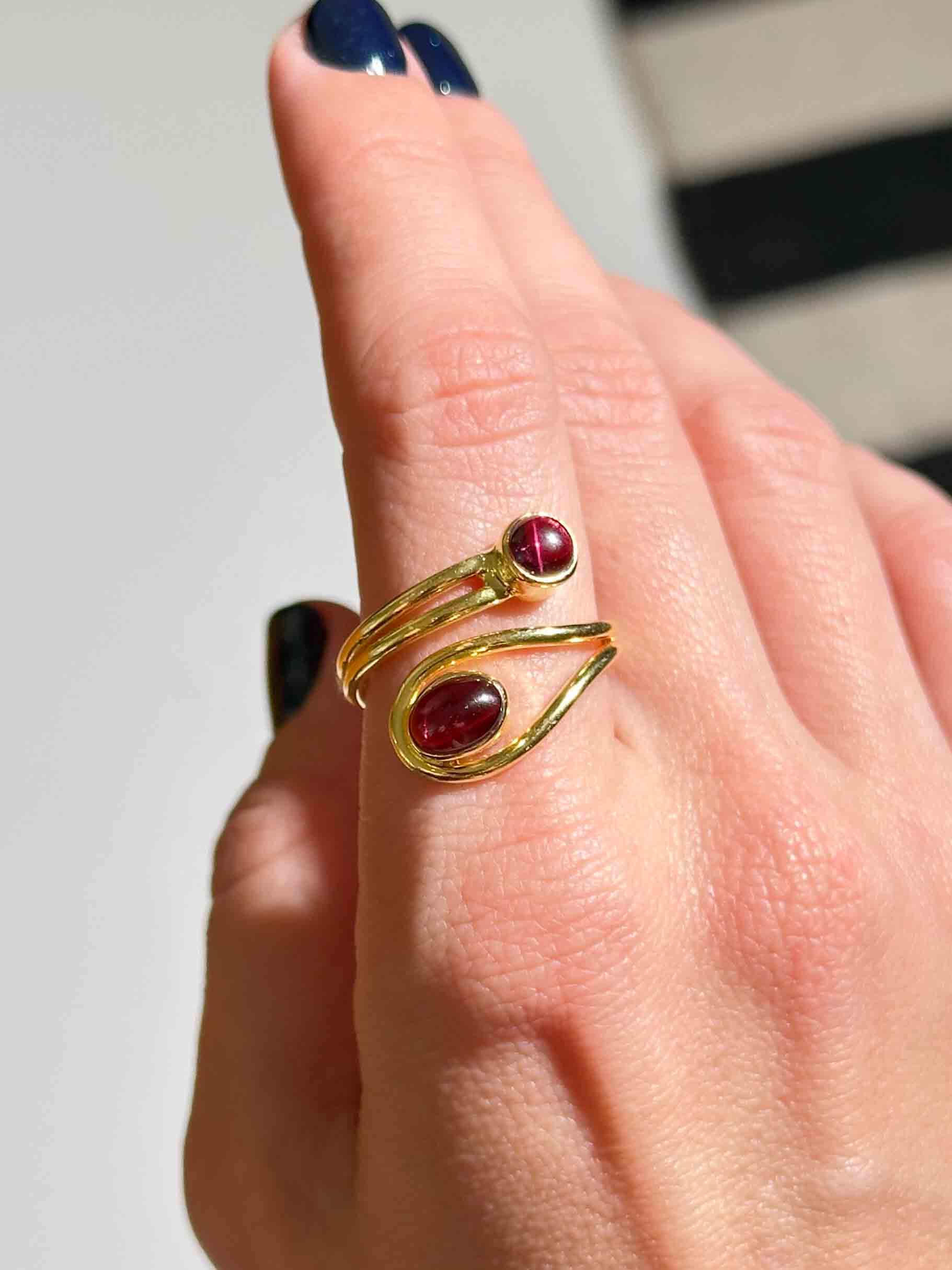 Δαχτυλίδι Double Γρανάτης – Επιχρυσωμένο 24Κ, Ασήμι 925