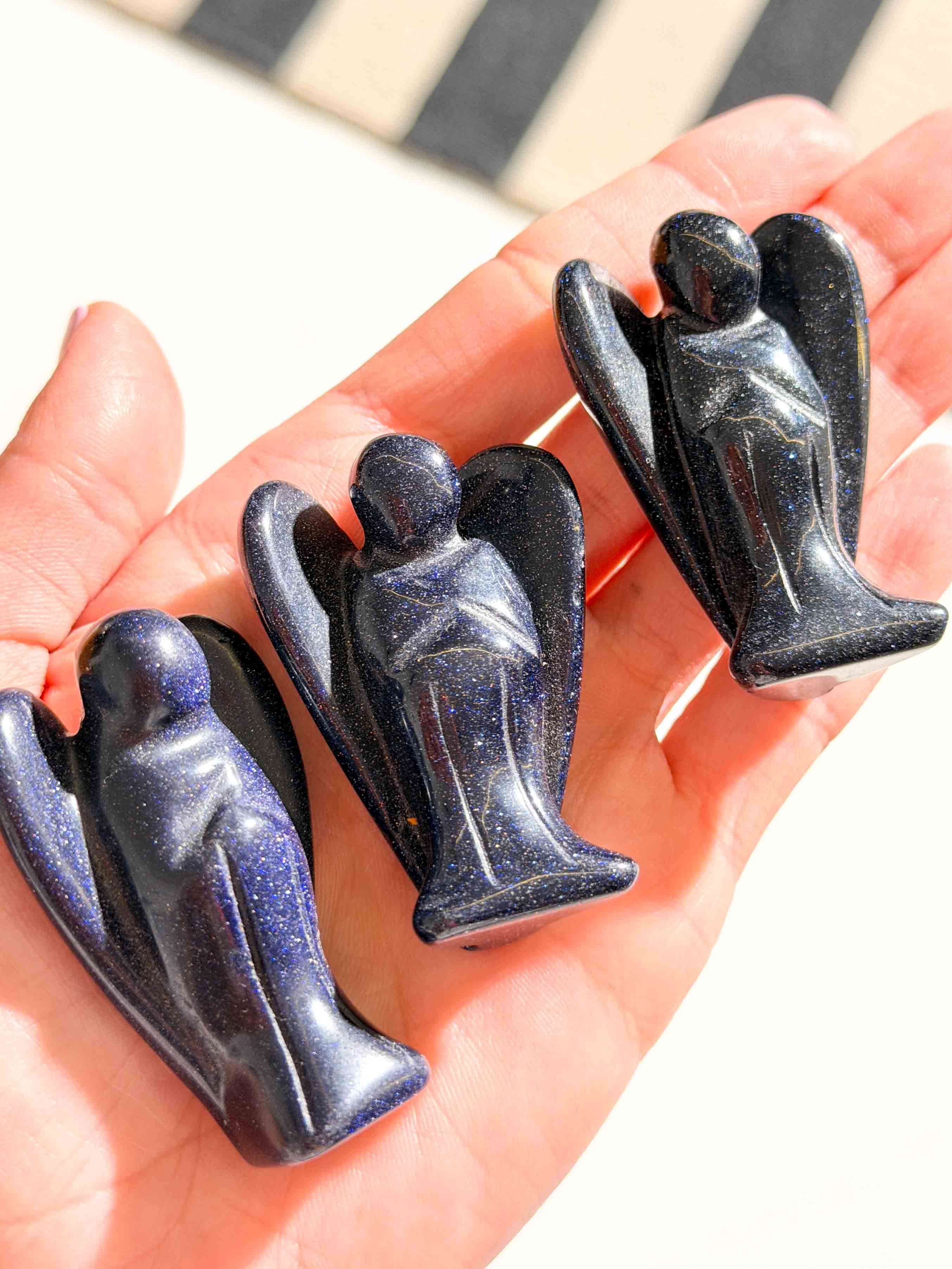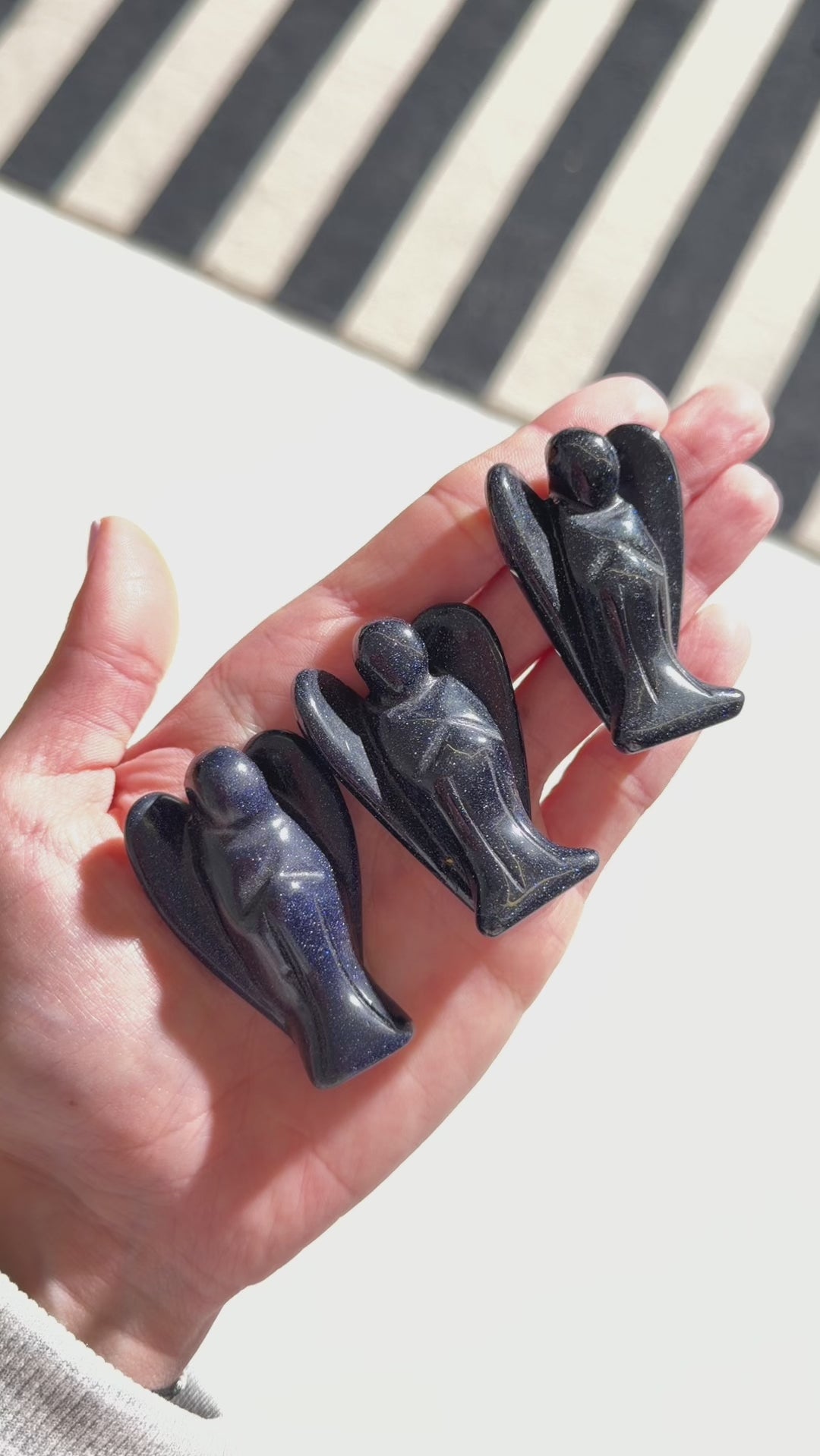 Προσθέστε μια πινελιά ουράνιας μαγείας στον χώρο σας με αυτόν τον χειροποίητο Άγγελο από Μπλε Χρυσόλιθο. Το βαθύ μπλε χρώμα του, γεμάτο με αμέτρητους μικροσκοπικούς σπινθήρες, θυμίζει ένα έναστρο νυχτερινό ουρανό, προσφέροντας μια αίσθηση απεραντοσύνης και ηρεμίας.