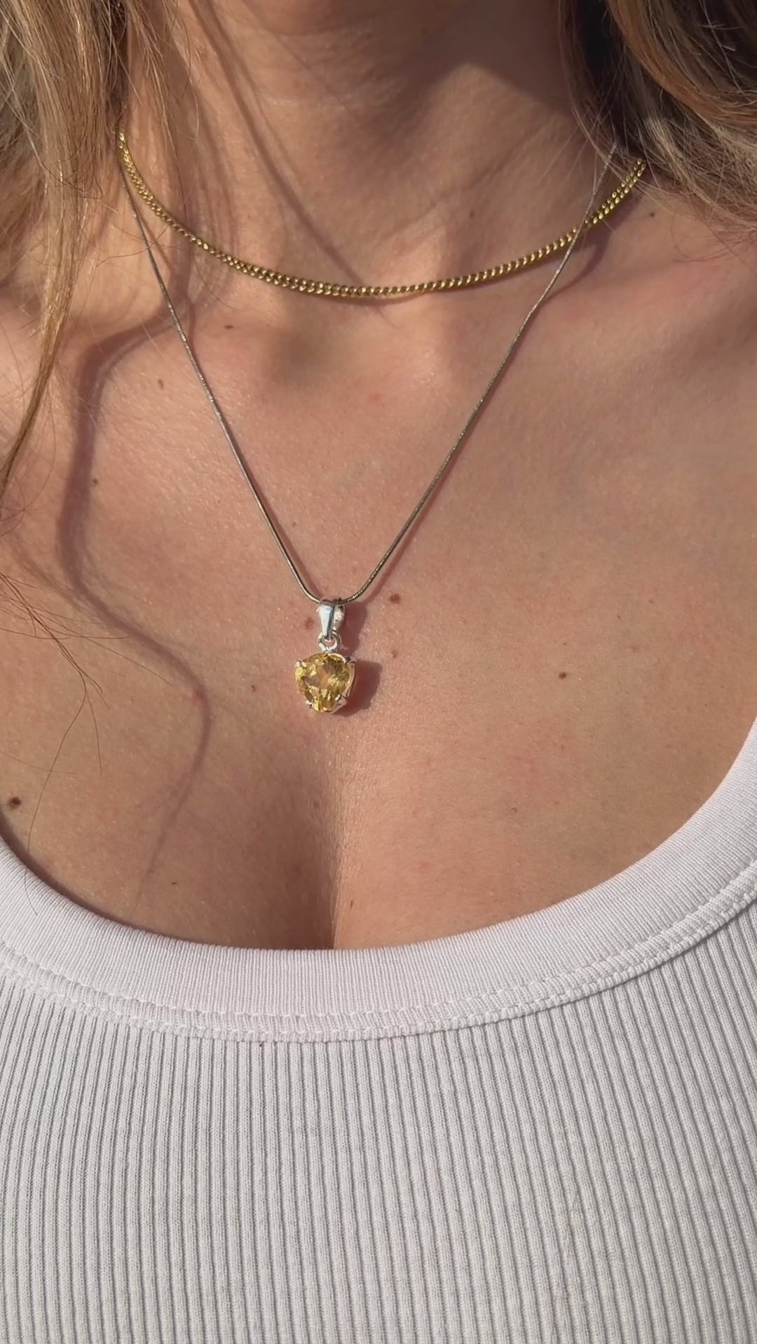 Εκφράστε την αγάπη και τη χαρά σας με αυτό το υπέροχο μενταγιόν σε σχήμα καρδιάς. Ο φυσικός Κιτρίνης με κοπή ταγιέ μεταμορφώνει αυτό το κλασικό σύμβολο σε μια πηγή αστραφτερής ενέργειας. Η πολυεδρική κοπή αναδεικνύει την καθαρότητα και το ζωντανό χρώμα του λίθου, δημιουργώντας ένα κόσμημα που αποπνέει τρυφερότητα και λάμψη ταυτόχρονα.