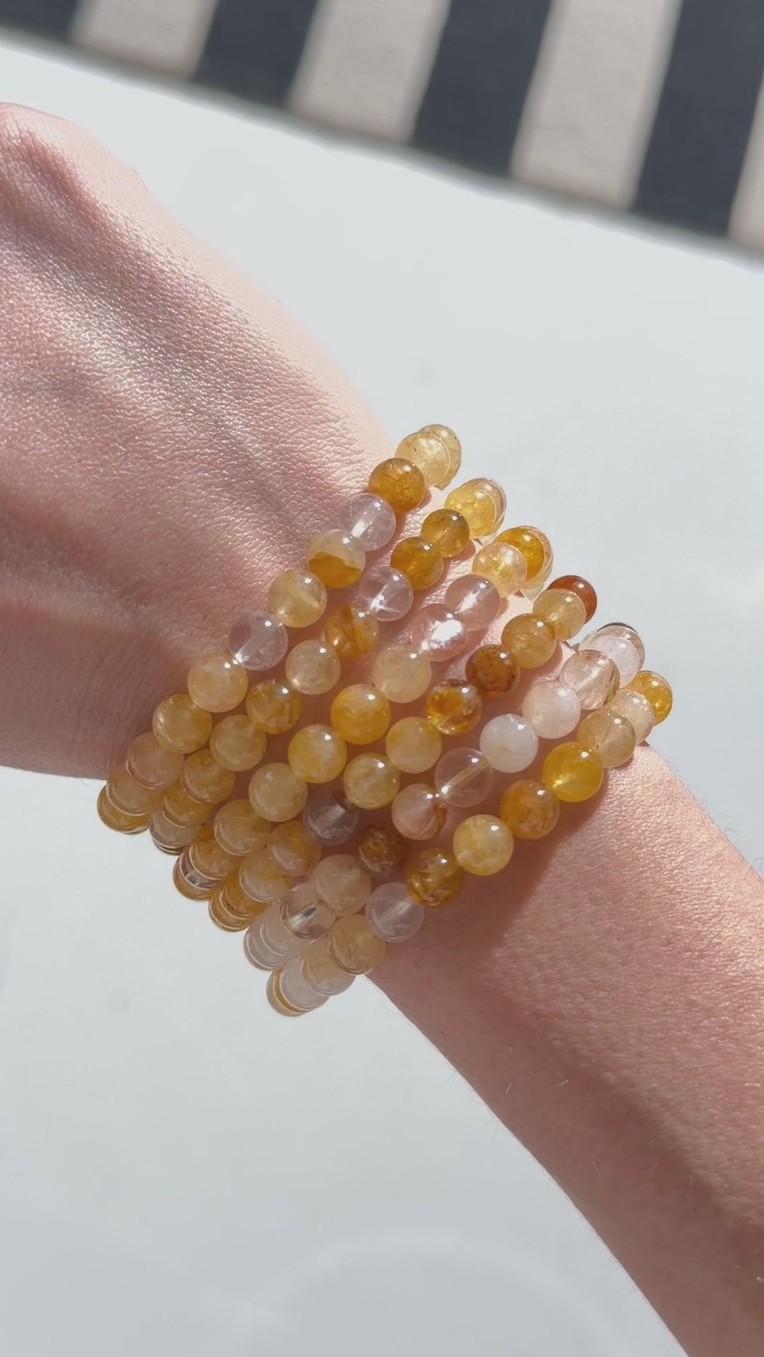 Αγκαλιάστε την απόλυτη ενέργεια με ένα κόσμημα που ακτινοβολεί πνευματική ζεστασιά και δύναμη. Αυτό το βραχιόλι από φυσικό Χρυσό Θεραπευτή 6 mm διαθέτει λείες, σφαιρικές χάντρες που αναδεικνύουν τις μοναδικές εσωτερικές λάμψεις και τις χρυσές "νεράδες" του κρυστάλλου, δημιουργώντας ένα αποτέλεσμα που θυμίζει εγκλωβισμένο ηλιακό φως.