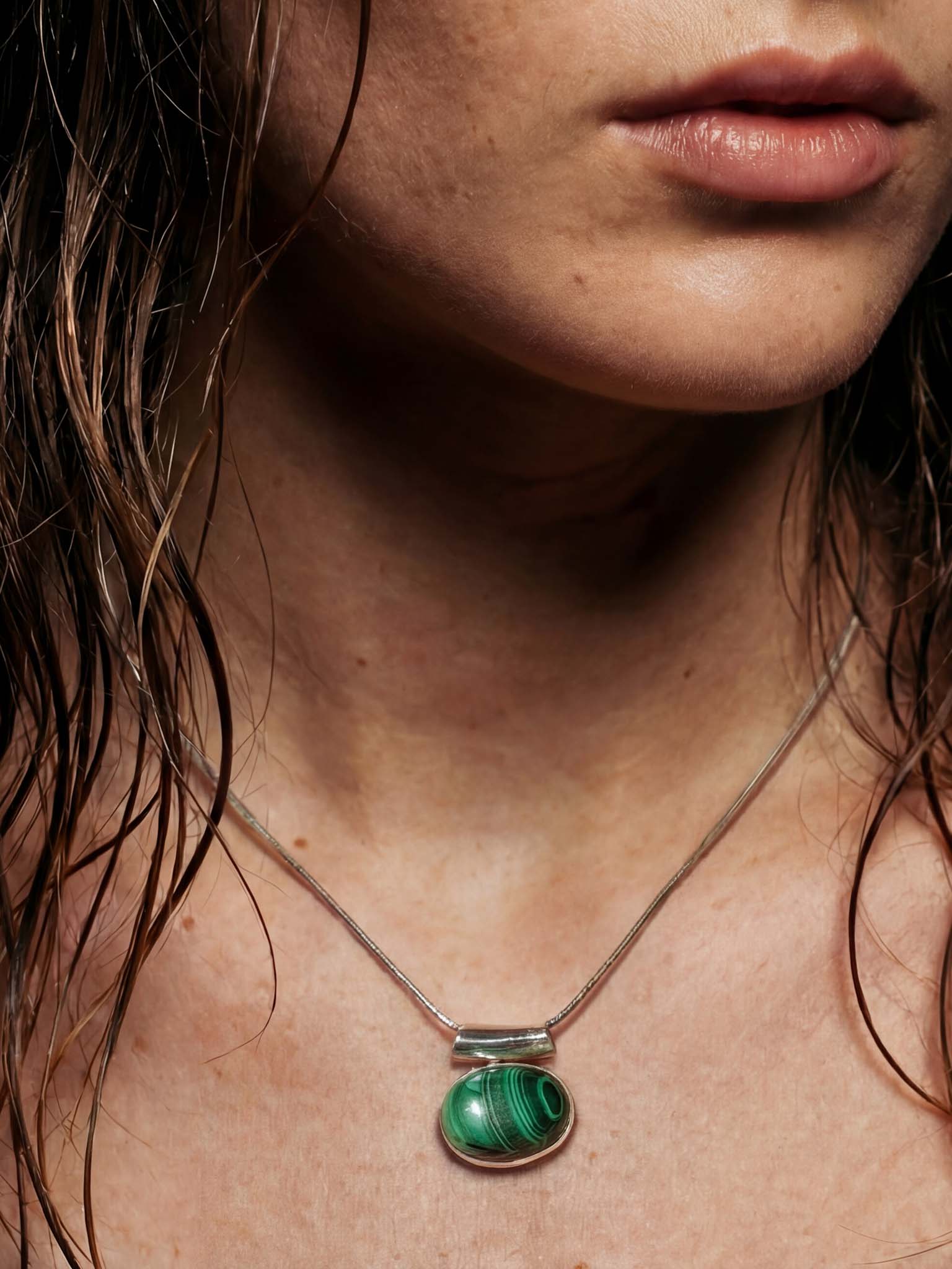 • Λίθος: Φυσικός Μαλαχίτης (Malachite) – κάθε πέτρα έχει το δικό της μοναδικό μοτίβο