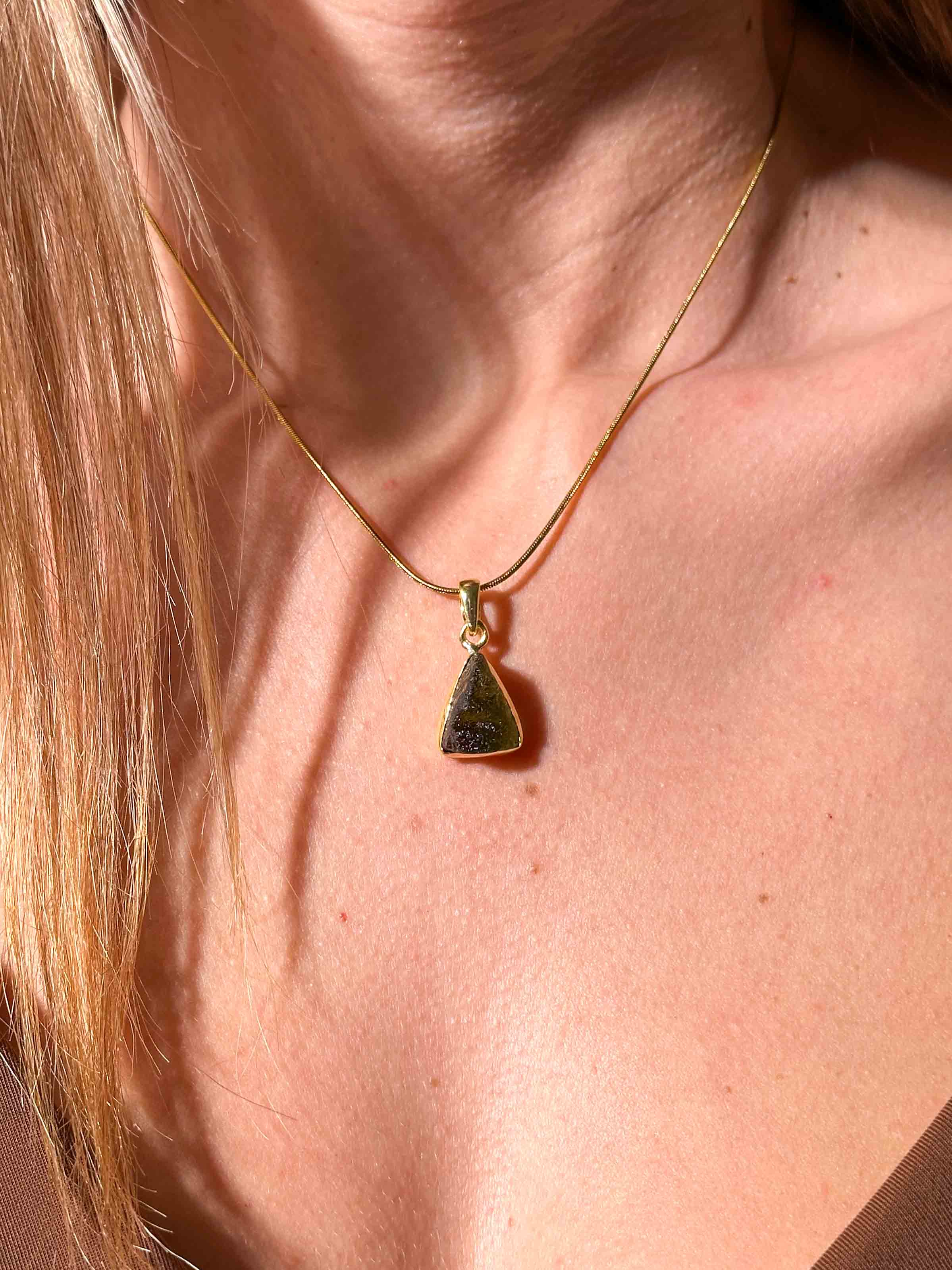Κάθε μενταγιόν είναι χειροποίητο, αναδεικνύοντας τη φυσική ομορφιά και τη μοναδικότητα του Μολδαβίτη, αποτελώντας έτσι μια διαχρονική προσθήκη σε κάθε συλλογή κοσμημάτων.
