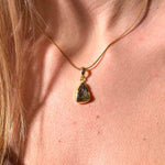Κάθε μενταγιόν είναι χειροποίητο, αναδεικνύοντας τη φυσική ομορφιά και τη μοναδικότητα του Μολδαβίτη, αποτελώντας έτσι μια διαχρονική προσθήκη σε κάθε συλλογή κοσμημάτων.