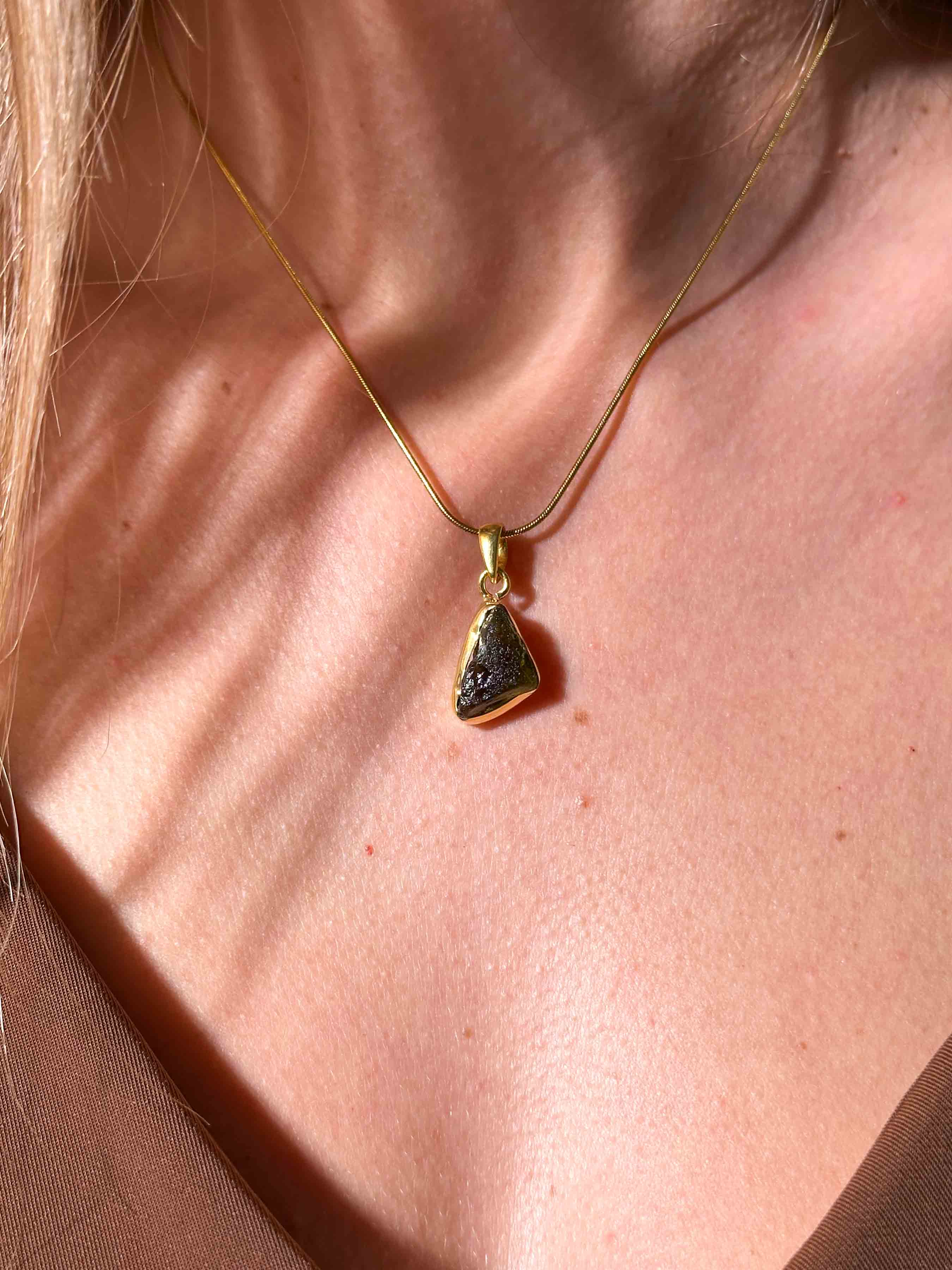 Κάθε μενταγιόν είναι χειροποίητο, αναδεικνύοντας τη φυσική ομορφιά και τη μοναδικότητα του Μολδαβίτη, αποτελώντας έτσι μια διαχρονική προσθήκη σε κάθε συλλογή κοσμημάτων.