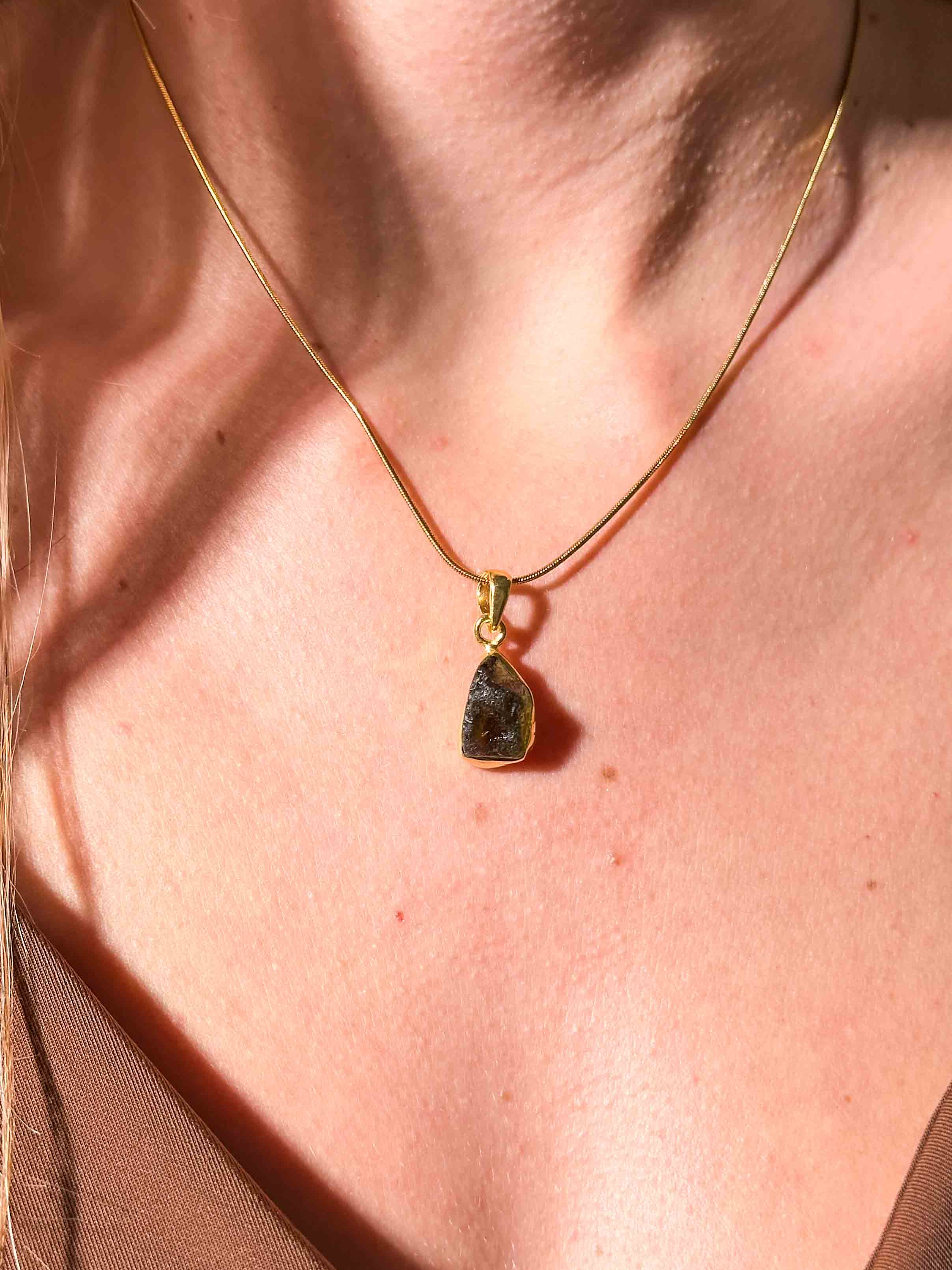 Κάθε μενταγιόν είναι χειροποίητο, αναδεικνύοντας τη φυσική ομορφιά και τη μοναδικότητα του Μολδαβίτη, αποτελώντας έτσι μια διαχρονική προσθήκη σε κάθε συλλογή κοσμημάτων.