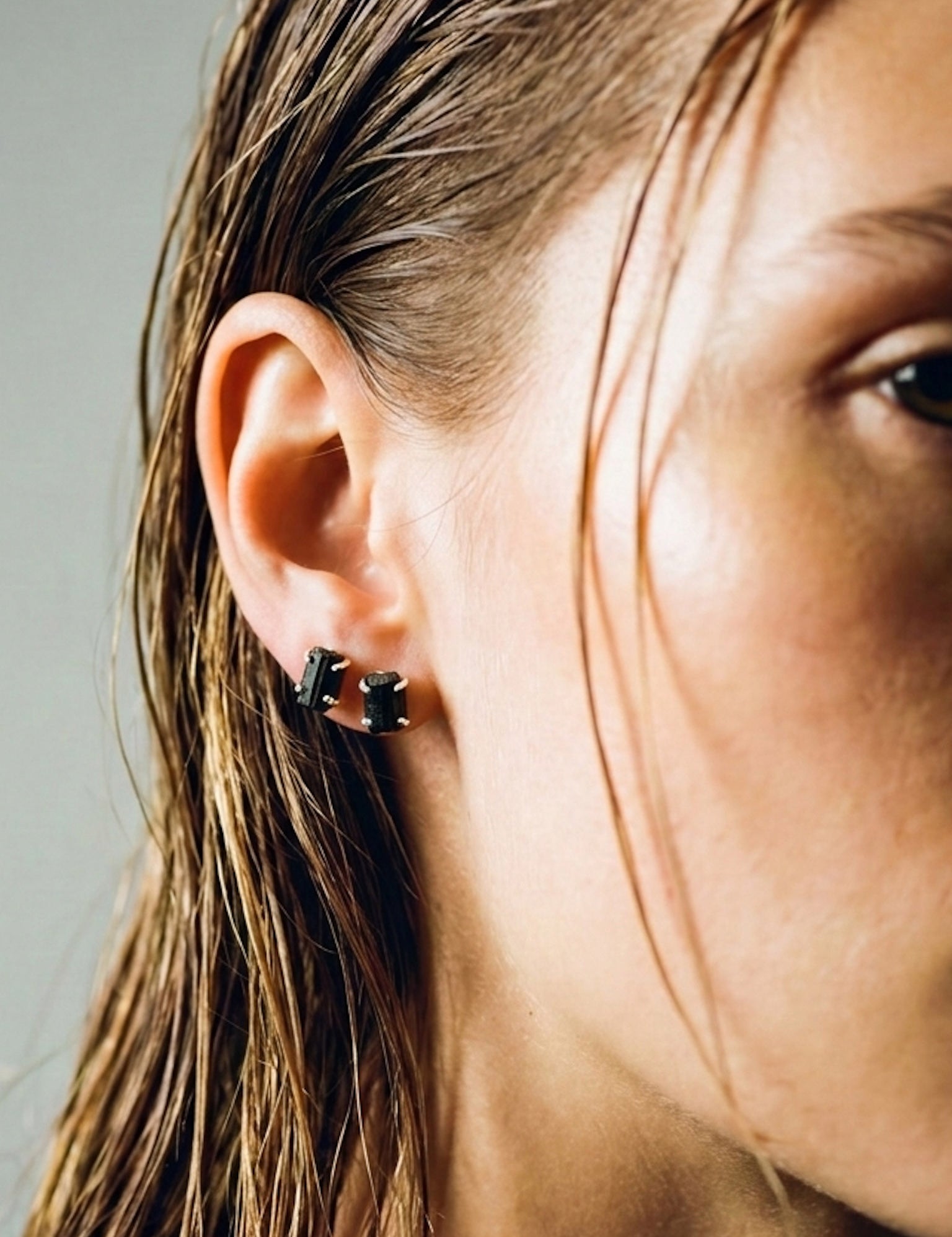 Μαύρη Τουρμαλίνη Ακατέργαστη Καρφωτά Σκουλαρίκια S.925