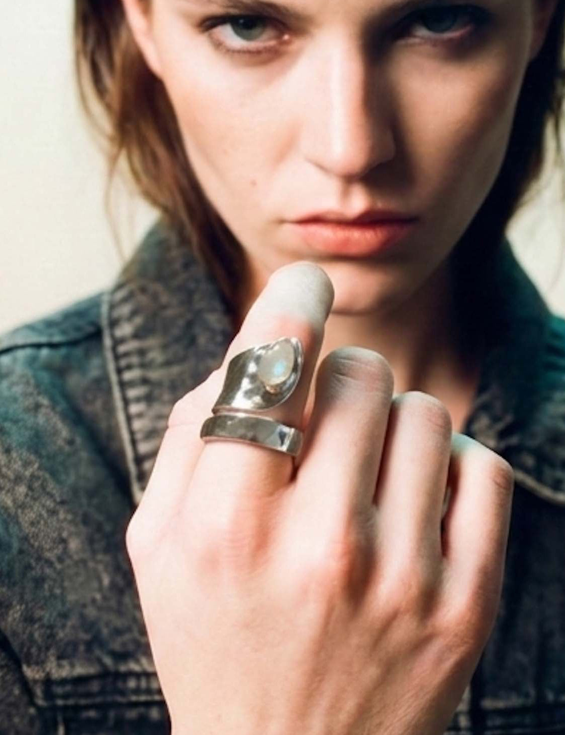 Μολδαβίτης & Λιβυκό Γυαλί Δαχτυλίδι A.925