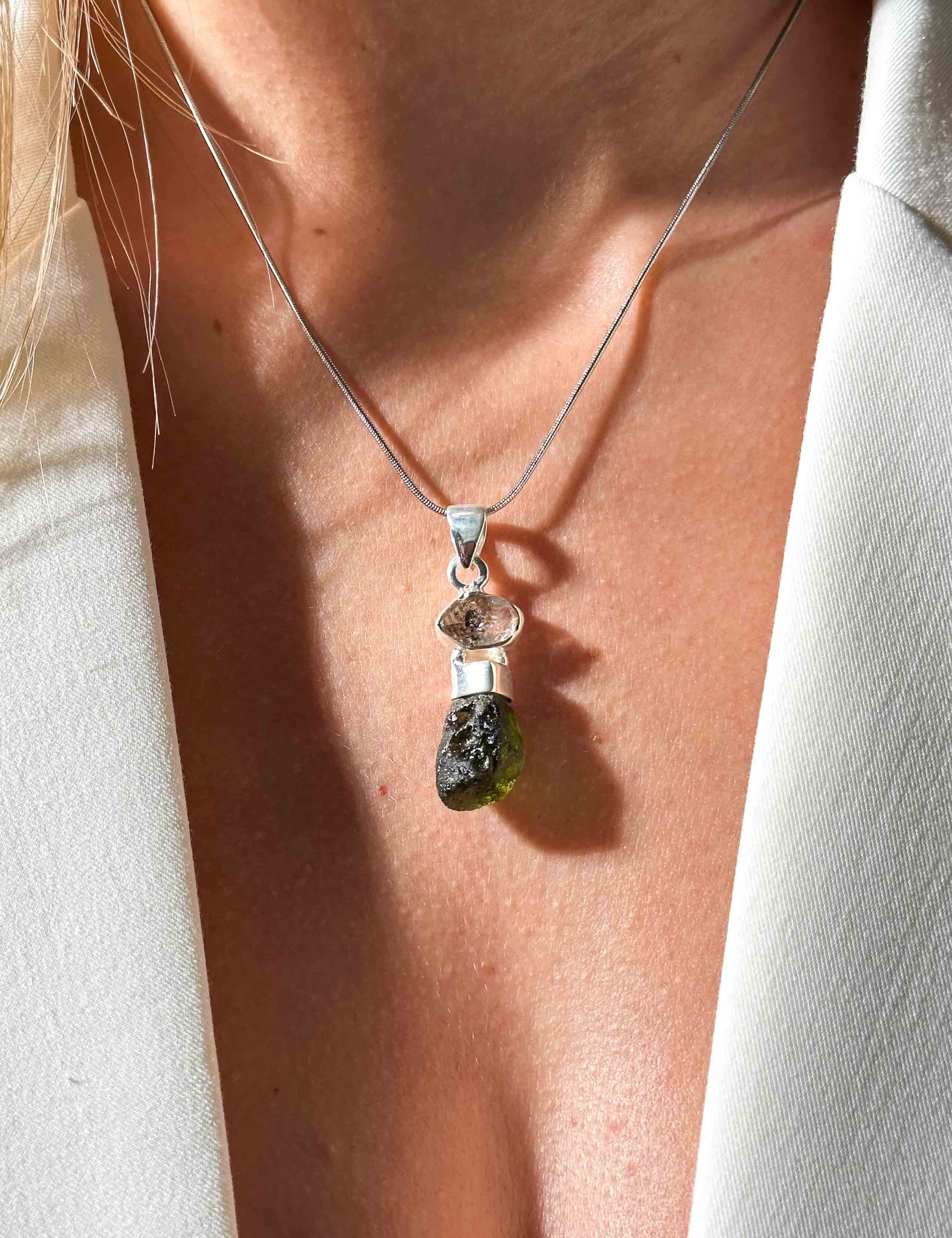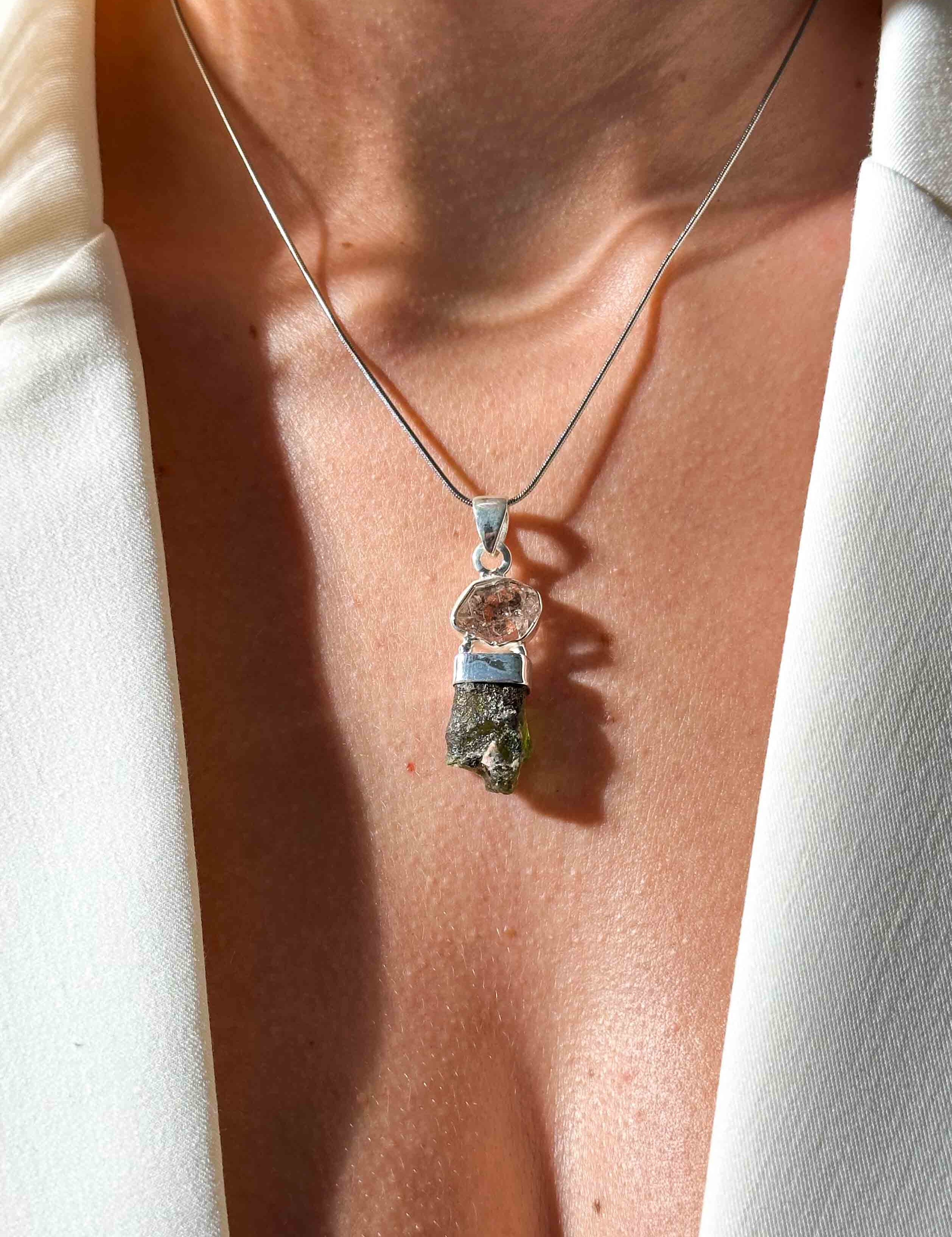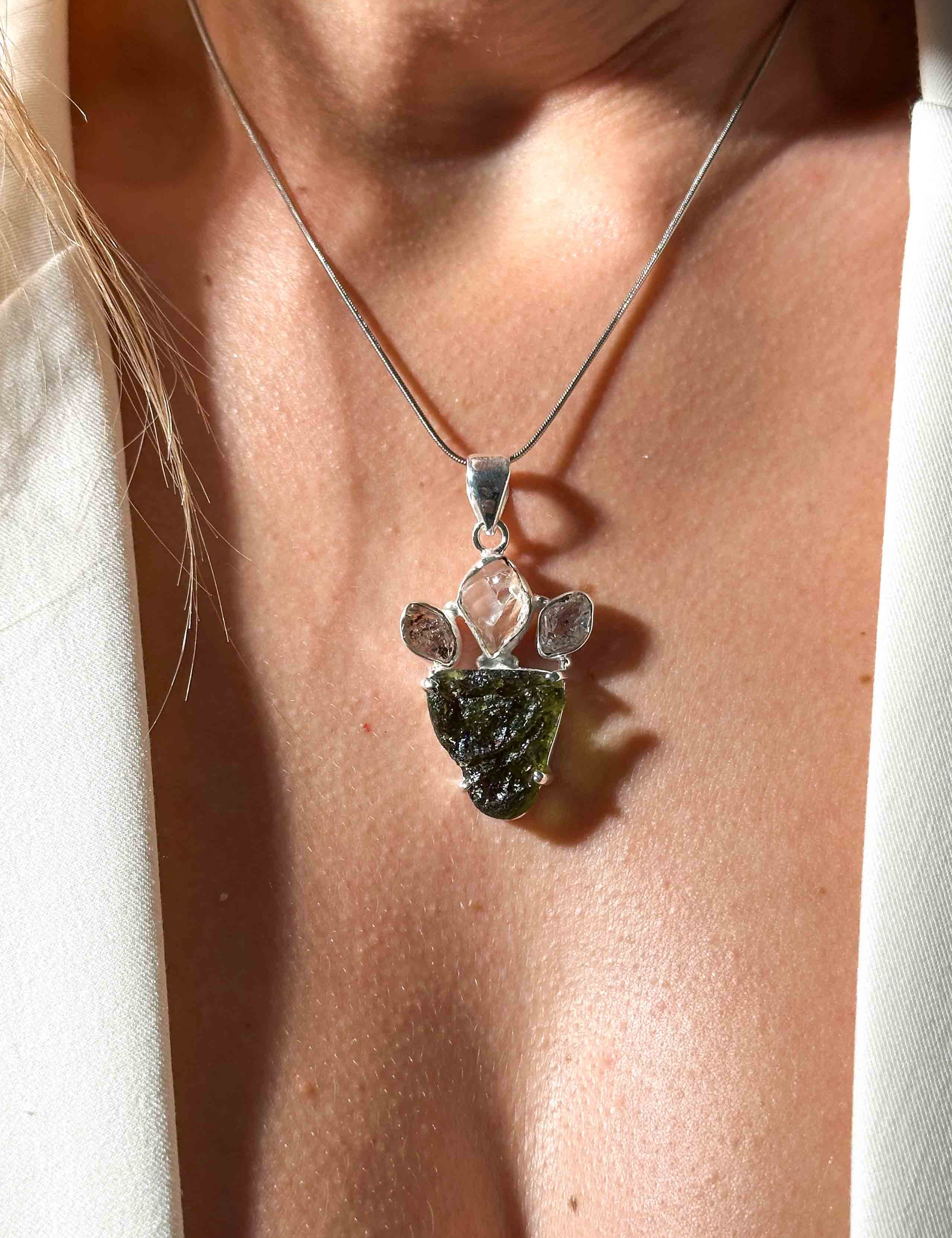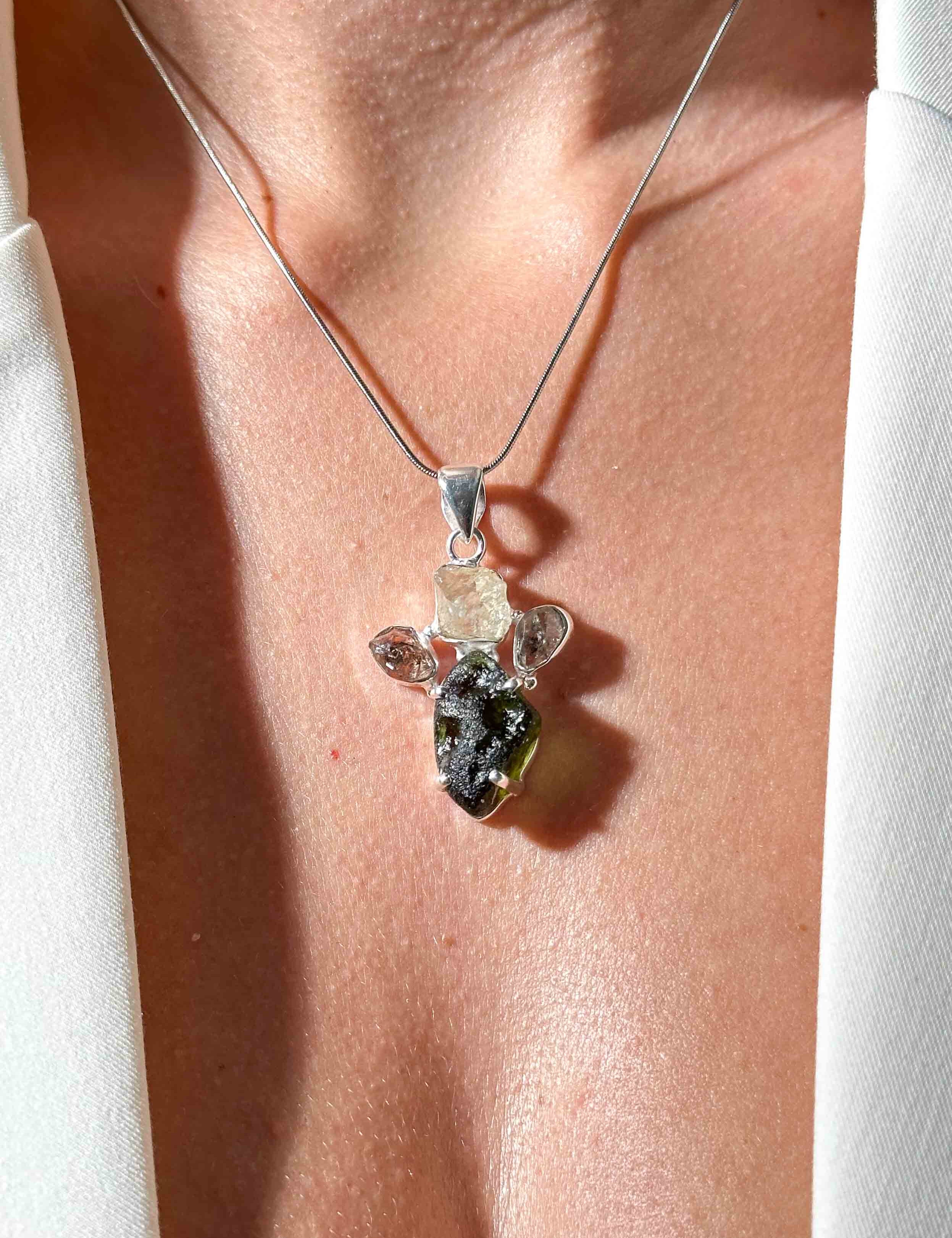 Μολδαβίτης • Διαμάντια Herkimer • Γυαλί Λιβυκής Ερήμου Α.925 01