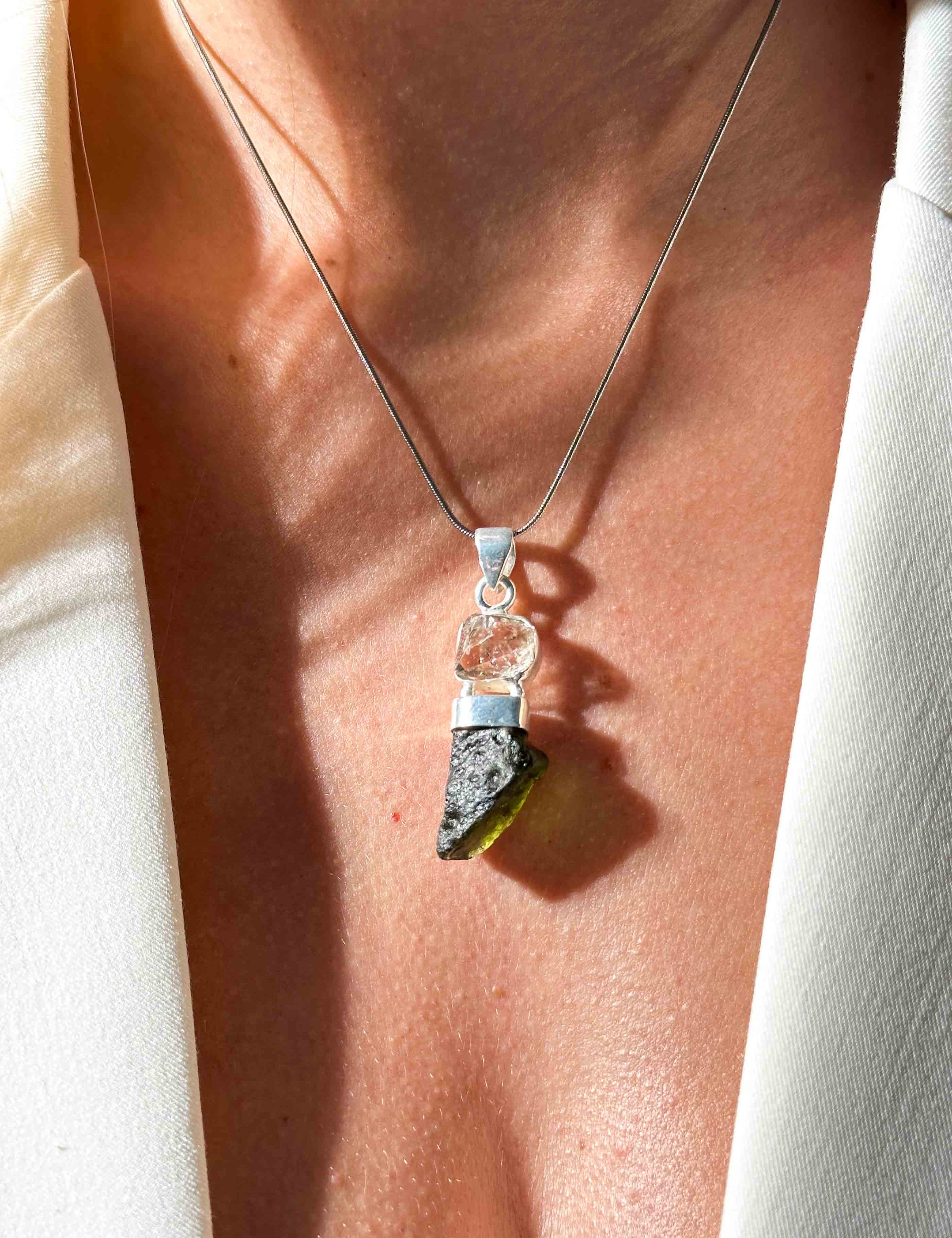 Μολδαβίτης • Διαμάντια Herkimer • Γυαλί Λυβικής Ερήμου Α.925 02