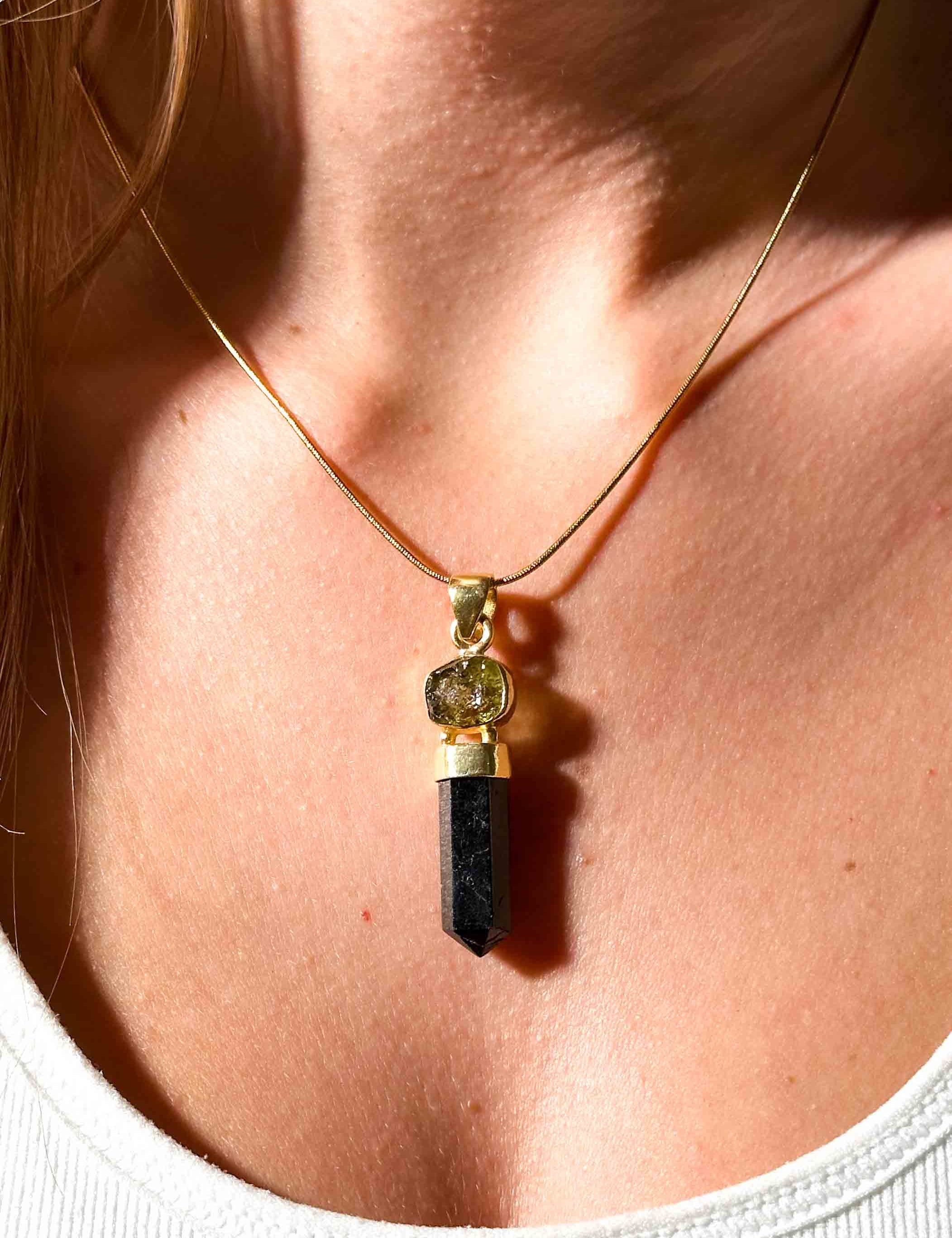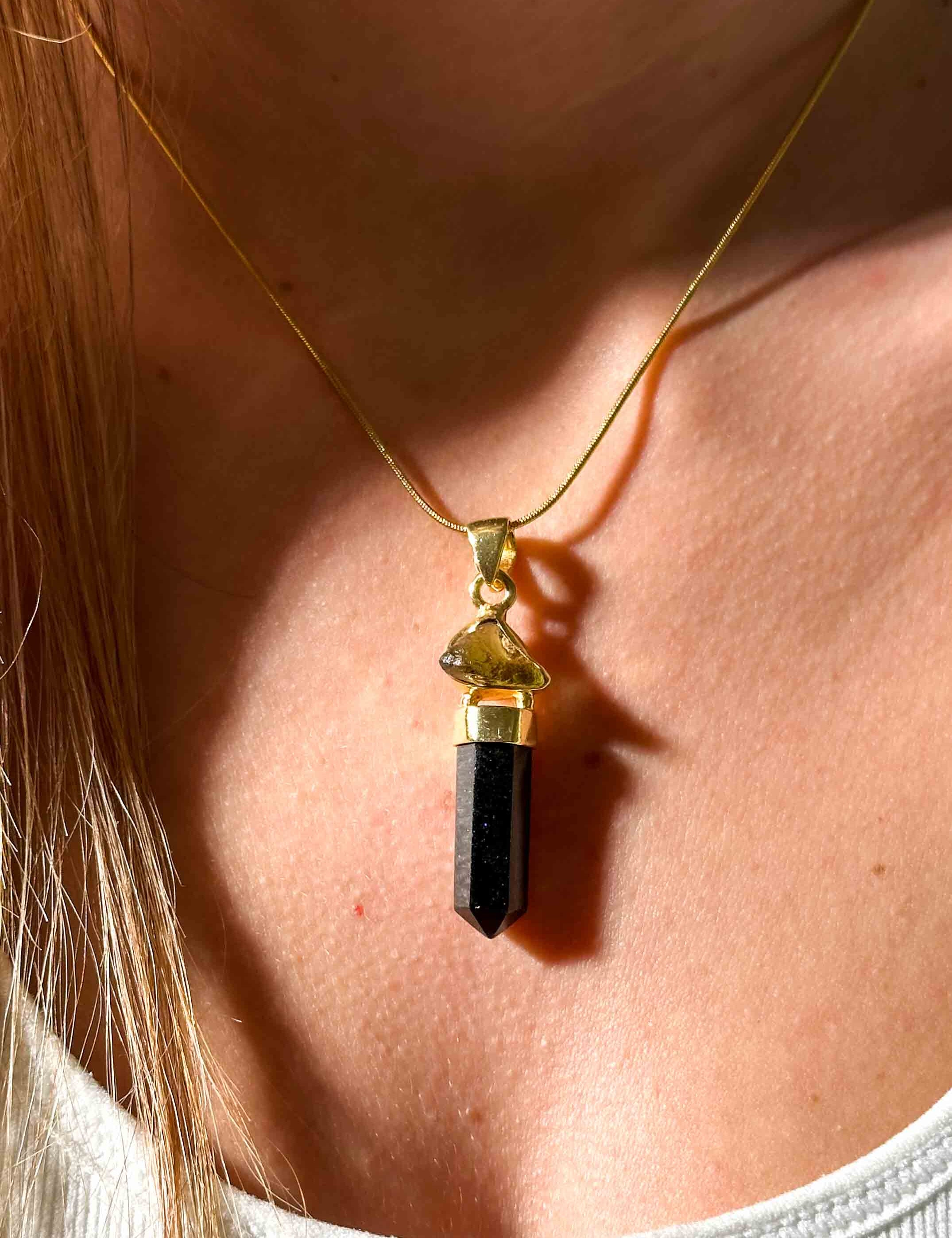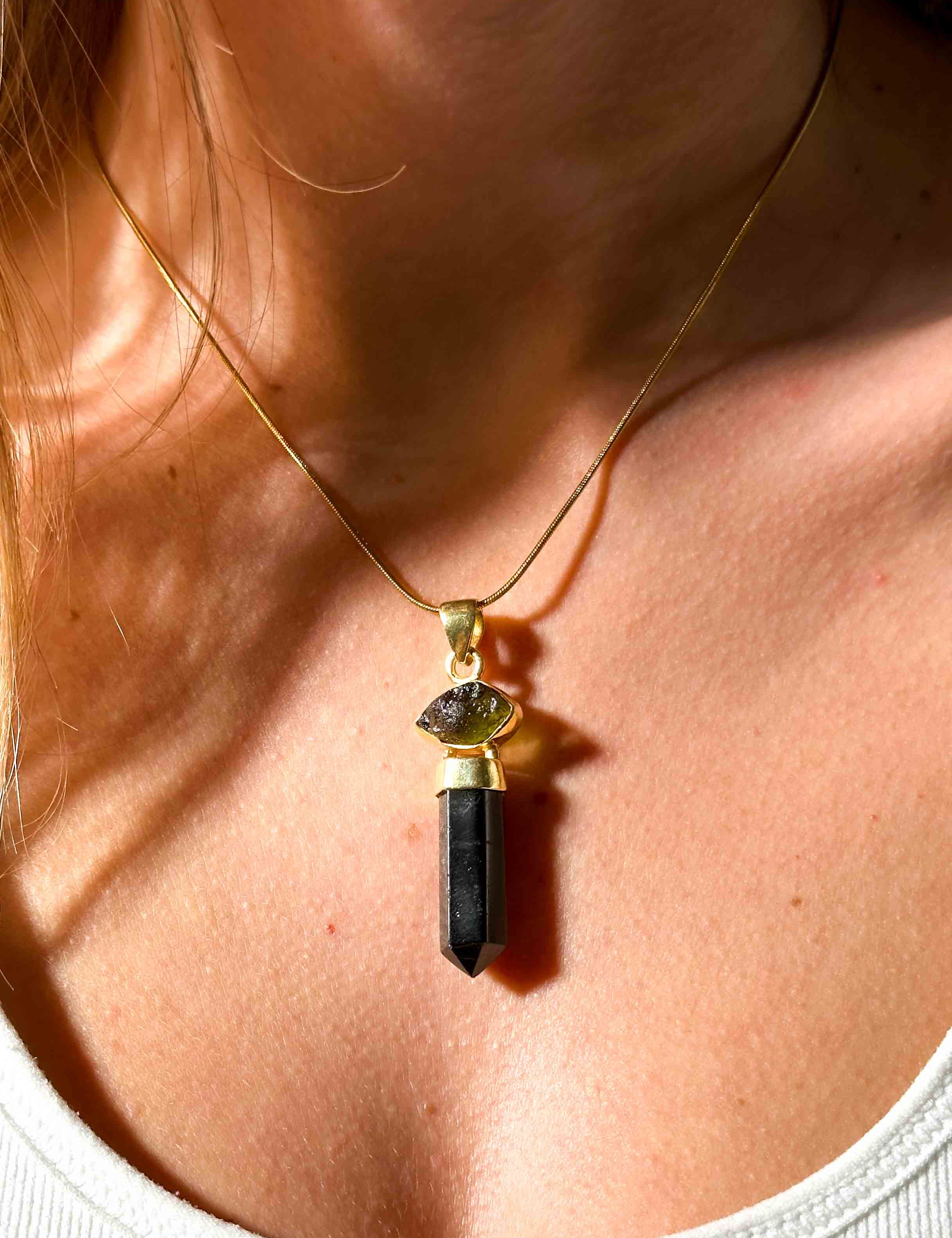Μαύρη Τουρμαλίνη & Μολδαβίτης Επιχρυσωμένο Α.925 04