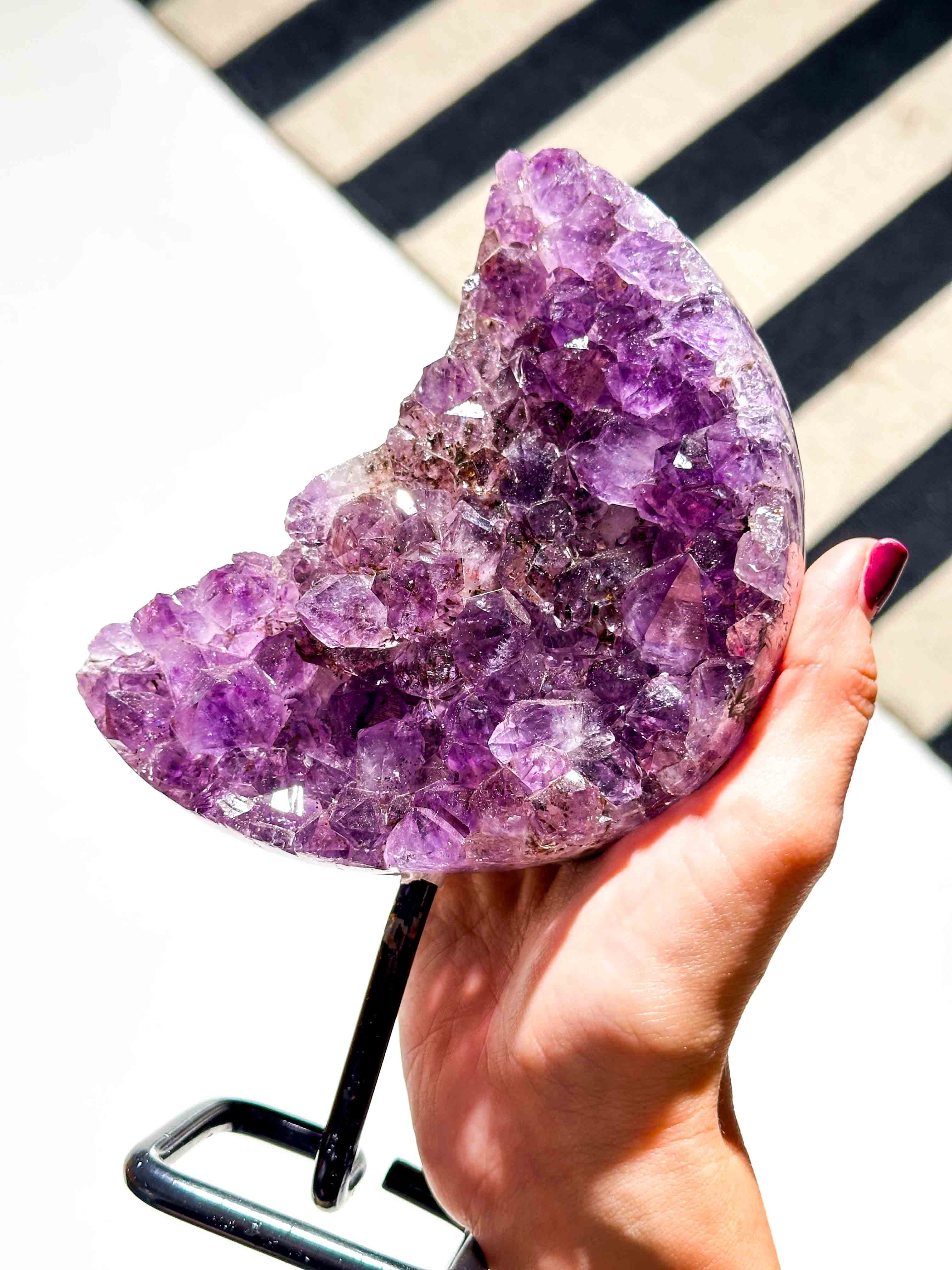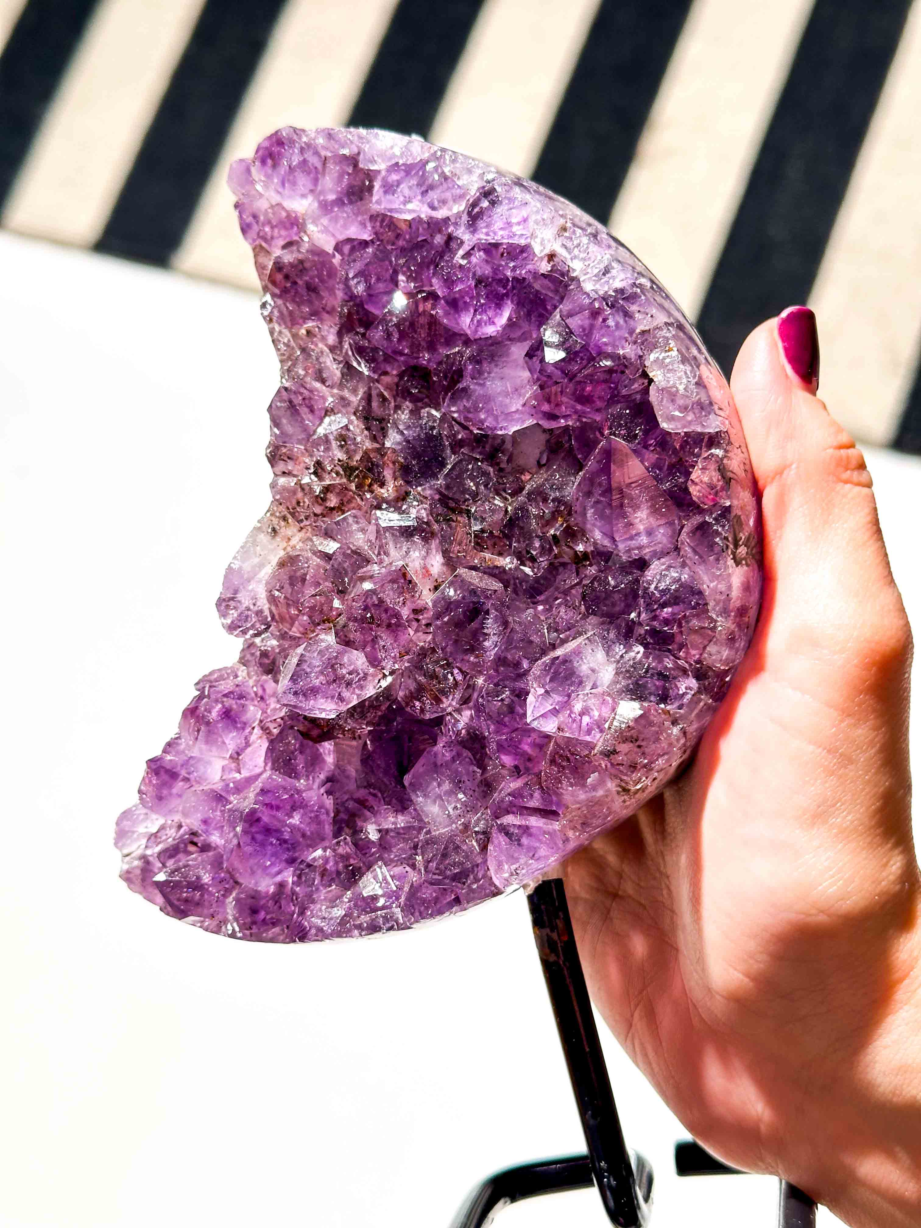 • Ημισέληνος Ακατέργαστου Αμέθυστου σε μεταλλικό σταντ •