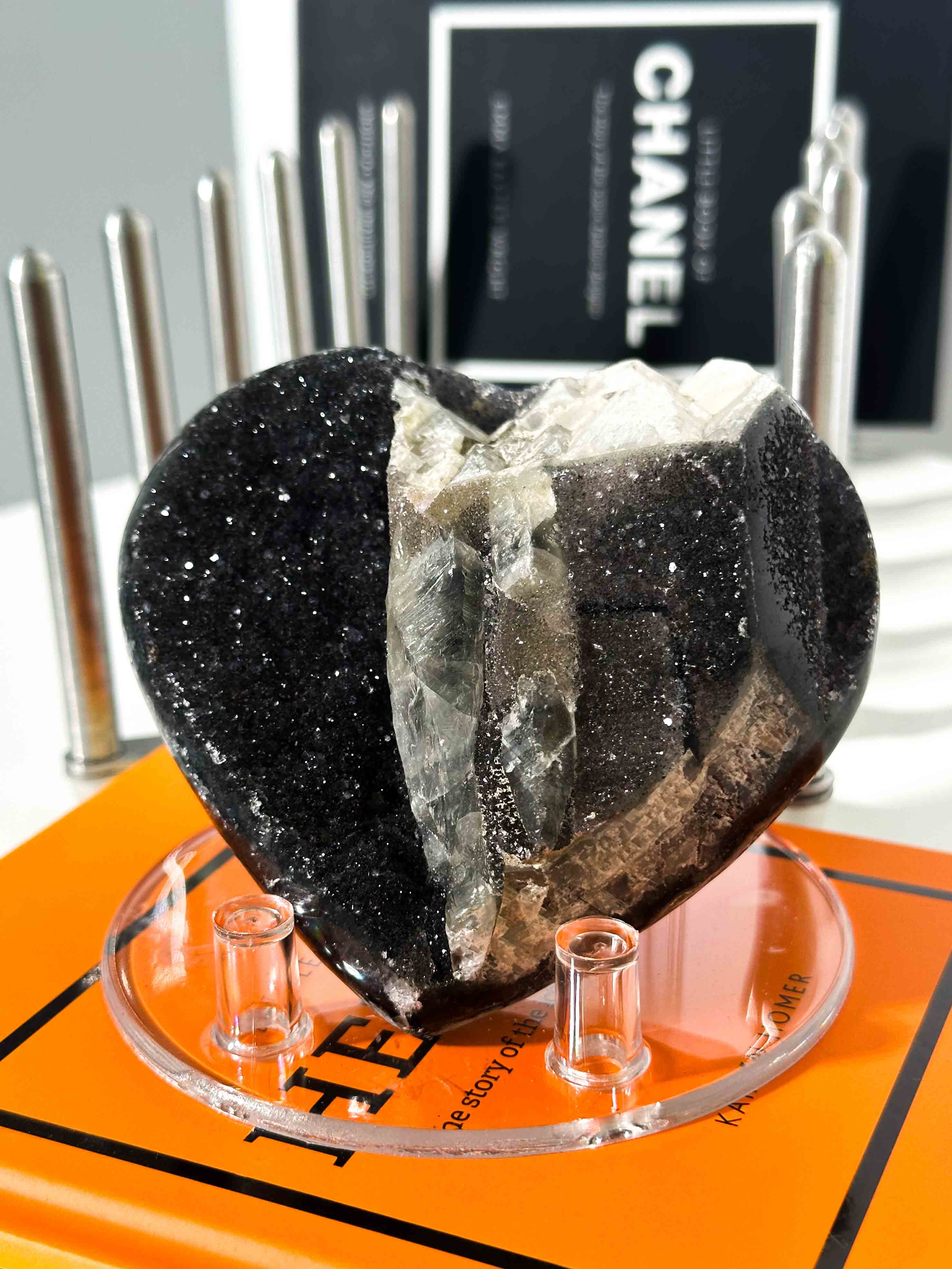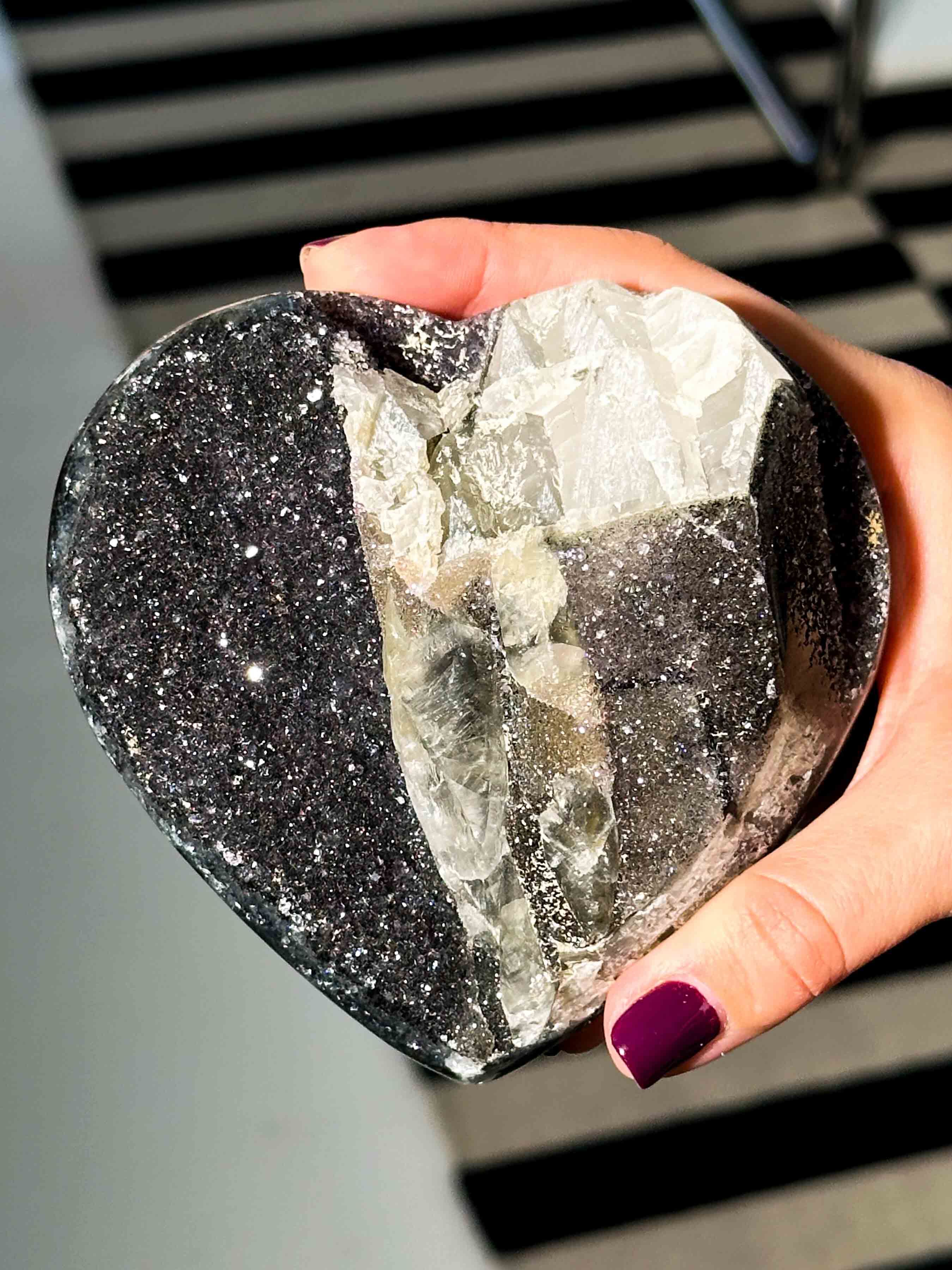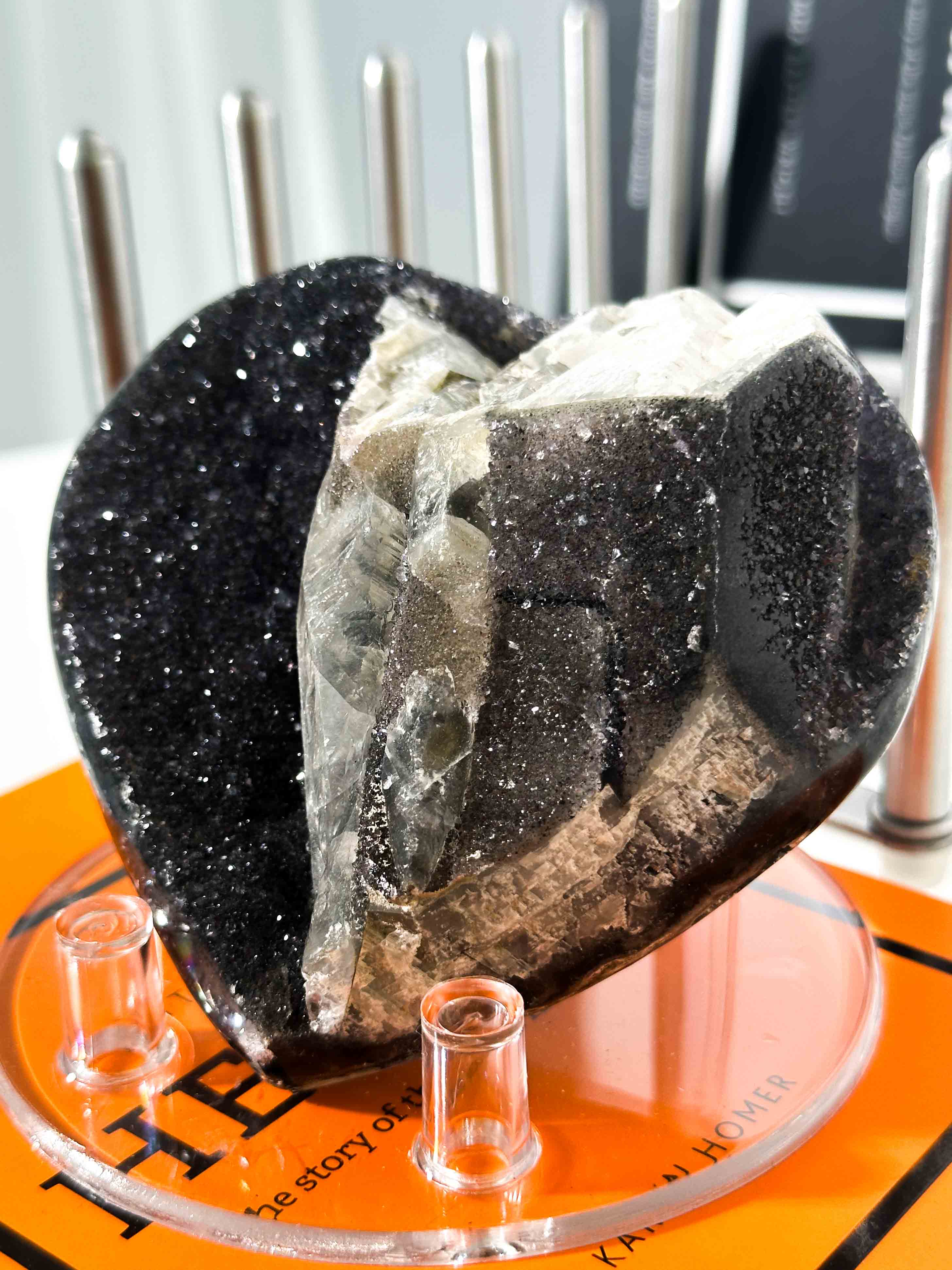 Σπάνια Καρδιά Black Galaxy Αμέθυστου με Καλσίτη