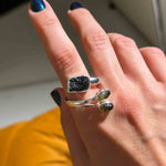 • Δαχτυλίδι με Ακατέργαστη Μαύρη Τουρμαλίνη & Μολδαβίτες σε Ασήμι 925