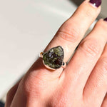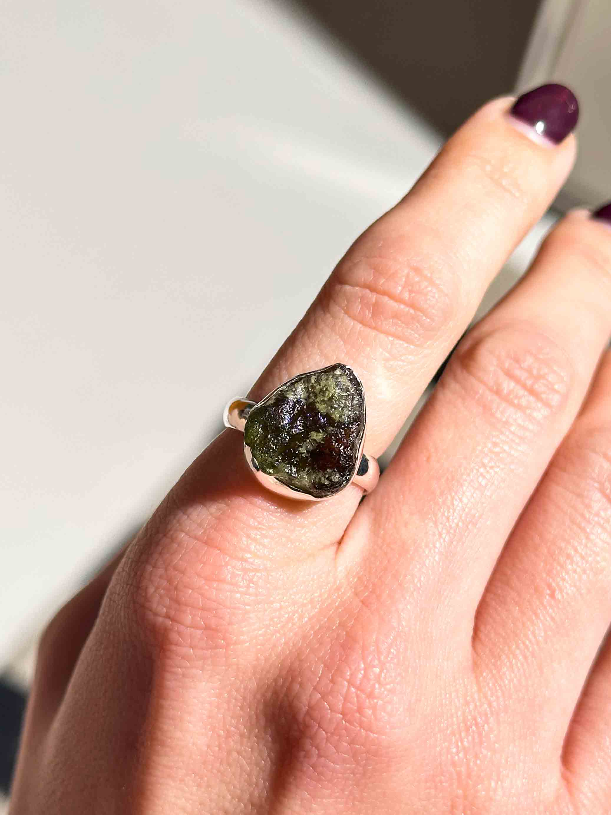 Κρατήστε τη δύναμη του σύμπαντος στα χέρια σας. Αυτό το χειροποίητο δαχτυλίδι από Ασήμι 925 αγκαλιάζει έναν αυθεντικό, ακατέργαστο Μολδαβίτη, τον πιο περιζήτητο τεκτίτη στον κόσμο.