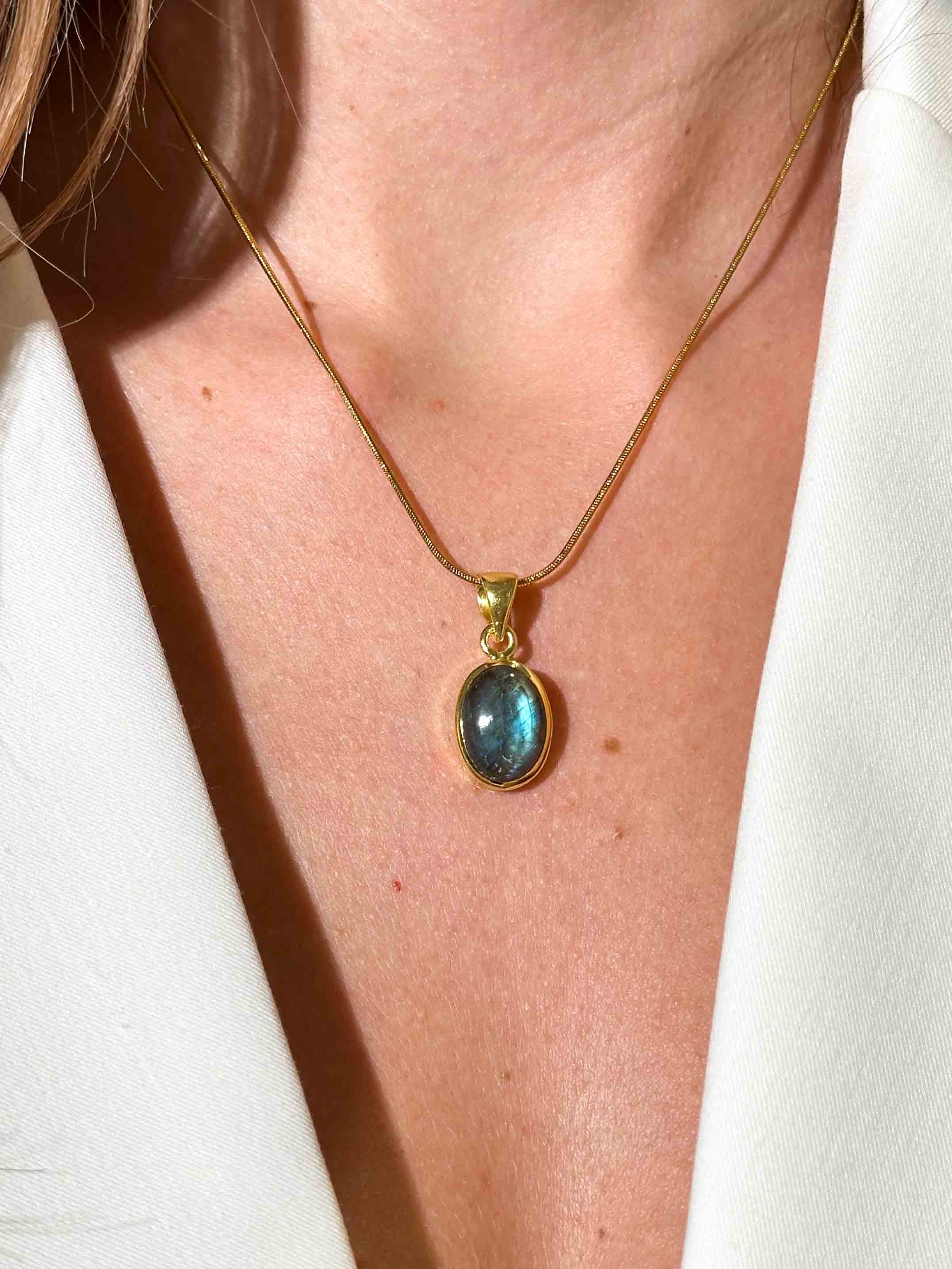 Επιχρυσωμένο 24Κ Ασήμι 925 Μενταγιόν με Λαβραδορίτη