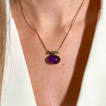 Επιχρυσωμένο 24Κ Ασήμι 925 Οβάλ Μενταγιόν με Αμέθυστο.