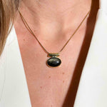 Επιχρυσωμένο 24Κ Ασήμι 925 Οβάλ Μενταγιόν με Χρυσό Οψιδιανό