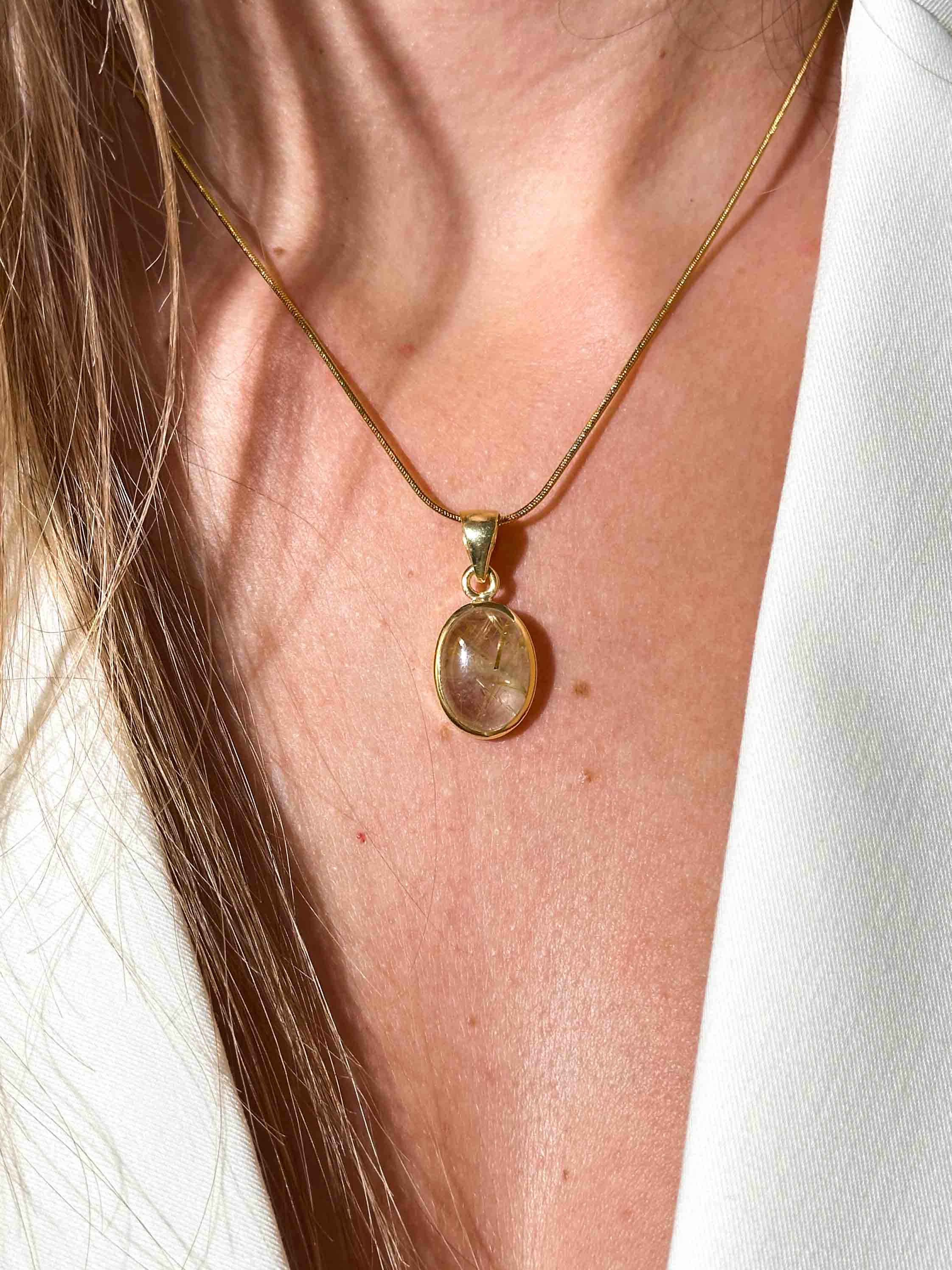 Επιχρυσωμένο 24Κ Ασήμι 925 Μενταγιόν με Χαλαζία με Χρυσό Ρουτίλιο