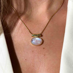 Επιχρυσωμένο 24Κ Ασήμι 925 Οβάλ Μενταγιόν με Φεγγαρόπετρα Rainbow