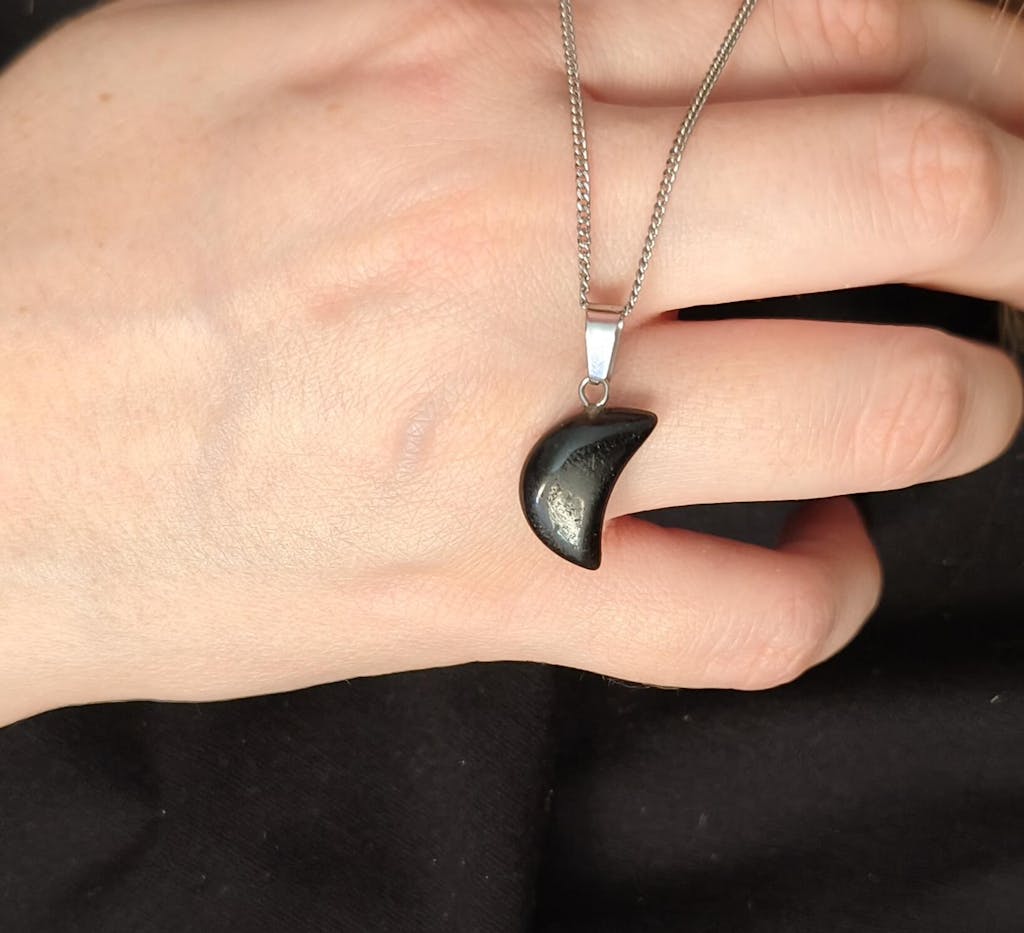 Ένα κόσμημα-ασπίδα, φτιαγμένο για προστασία, γείωση και εσωτερική σταθερότητα. Η μικρή ημισέληνος από φυσική Μαύρη Τουρμαλίνη αποπνέει δύναμη και ηρεμία, με τη βαθιά μαύρη της απόχρωση να μαγνητίζει και να ενισχύει την αίσθηση ασφάλειας και συγκέντρωσης.