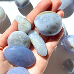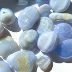 Οι κρύσταλλοι Γαλάζιου Δαντελοειδή  Αχάτη έχουν μια απαλή και ηρεμιστική ενέργεια που μπορεί να χρησιμοποιηθεί για να ηρεμήσει και να χαλαρώσει το μυαλό και το σώμα. Είναι μια εξαιρετική πέτρα για να βοηθήσει με το άγχος, το στρες και την ένταση, καθώς και για την ανακούφιση από πονοκεφάλους και ημικρανίες.
