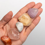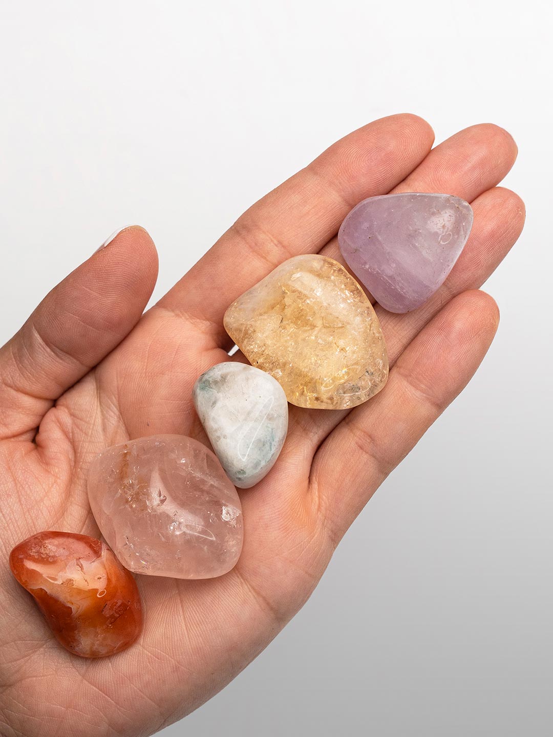 Καρνεόλιο, Ροζ Χαλαζίας, Φεγγαρόπετρα, Κιτρίνης, Αμέθυστος.