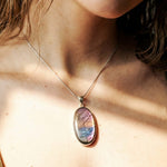 Κλέψτε τις εντυπώσεις και αναδείξτε το προσωπικό σας στυλ με αυτό το επιβλητικό και άκρως σαγηνευτικό μενταγιόν. Στο επίκεντρο του κοσμήματος βρίσκεται ένας εντυπωσιακός σε μέγεθος, φυσικός Μωβ Λαβραδορίτης σε κλασική οβάλ κοπή, περίτεχνα και λιτά δεμένος σε Ασήμι 925, ώστε να αφήνει την πέτρα να πρωταγωνιστεί.